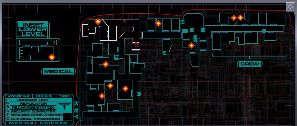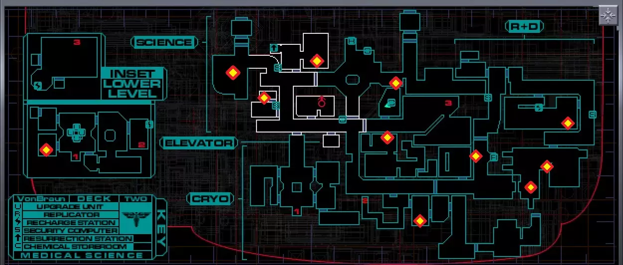 各楼层音频日志位置。有助于获取成就Archivist。 医疗科学甲板。 共21个日志。