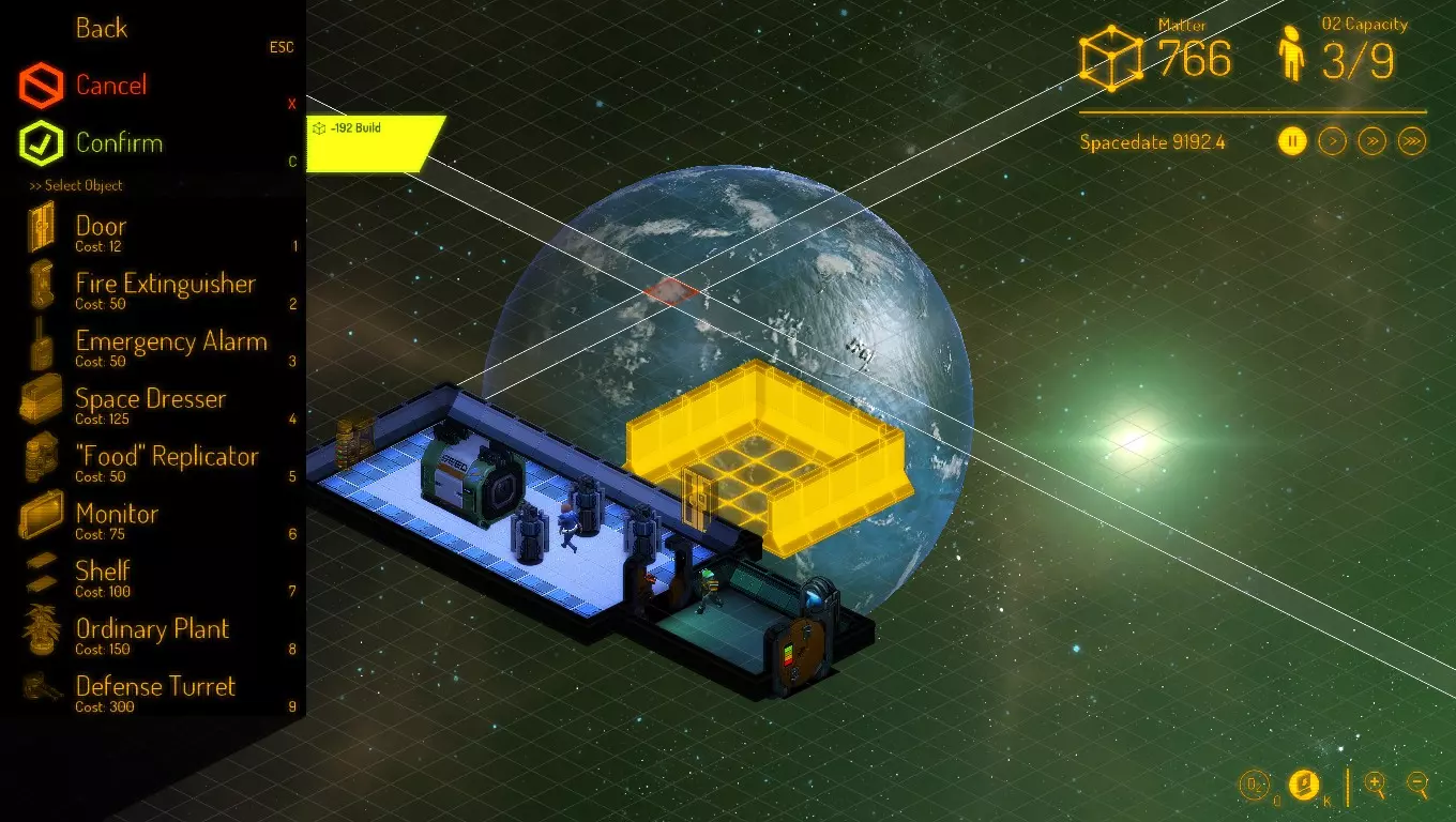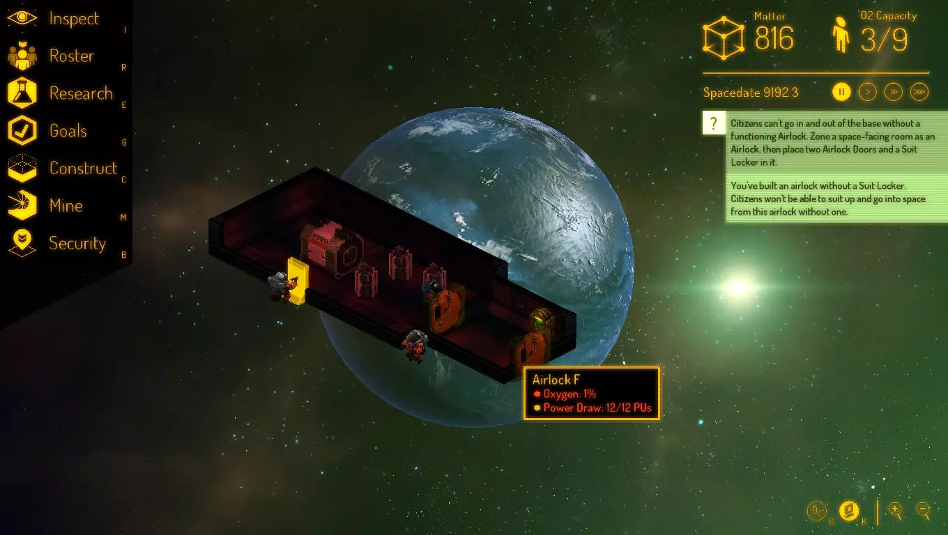 5. 如果建造者正在建造墙壁,现在你可以【排队建造】气闸门和宇航服储物柜。你只需要一个宇航服储物柜,再多会产生维护问题。