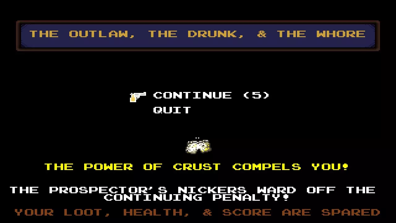 通过积分可以获得额外的生命/续关机会。每个角色获得额外续关机会的速率各不相同。就像过去的美好时光一样,积分曾经意味着很多东西! 死亡并不一定是结束!只要你还有续关机会,就可以重新尝试你失败的关卡。但要注意:使用续关机会会使你的最大生命值减少1点,同时你的金钱和金块也会减半! 注意:值得庆幸的是,使用续关机会不会对你的属性或已收集的古董产生任何影响!
