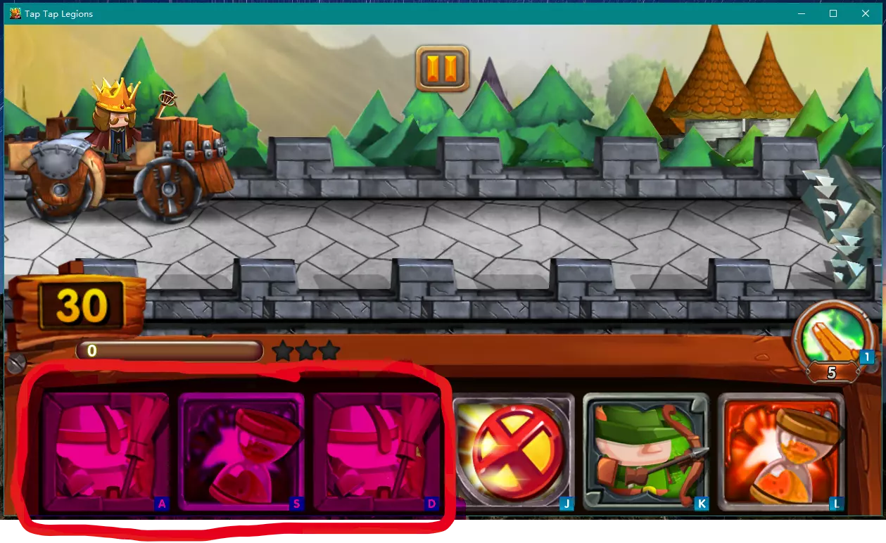 也就是【A】、【S】、【D】、【J】、【K】、【L】这六个按键对应游戏中的六张卡牌。 我们可以利用这种出兵方式来实现本地多人合作。 本地双人合作 在此之前,你需要在现实中寻找一名玩家和你一起操作键盘上的按键,这是前提。 以下是双人游戏的分工合作: 玩家一用手控制键盘上的【A】、【S】、【D】三个按键出兵,玩家一将管理出兵按键中的红色区域。