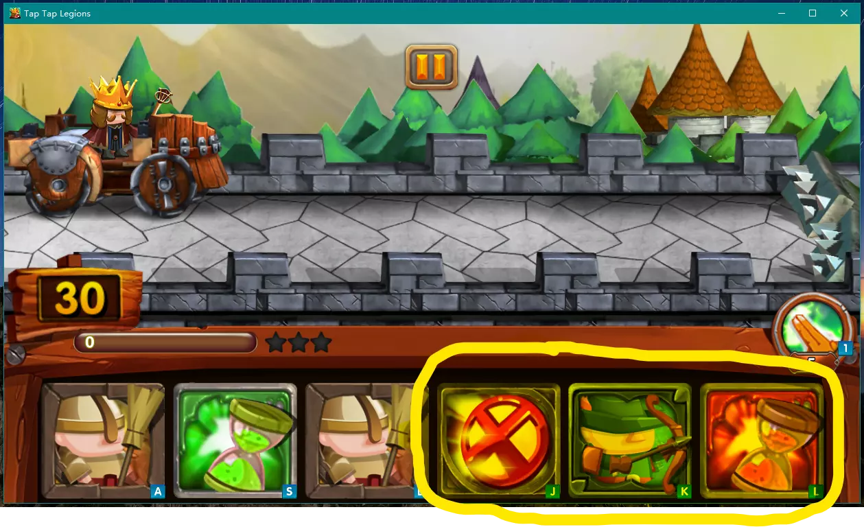 玩家二用手控制键盘上的【J】、【K】、【L】三个按钮出兵。玩家二将管理出兵按钮中的黄色区域。
