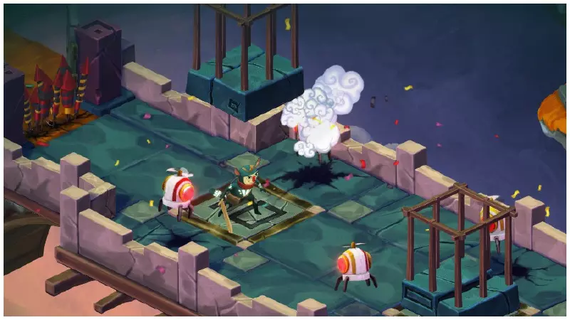 使用思维方块击败敌人 边缘高地,在为小丑设置陷阱后,你将进入下一个区域。需要将敌人引诱到方块的攻击位置,并及时向旁边跳开。