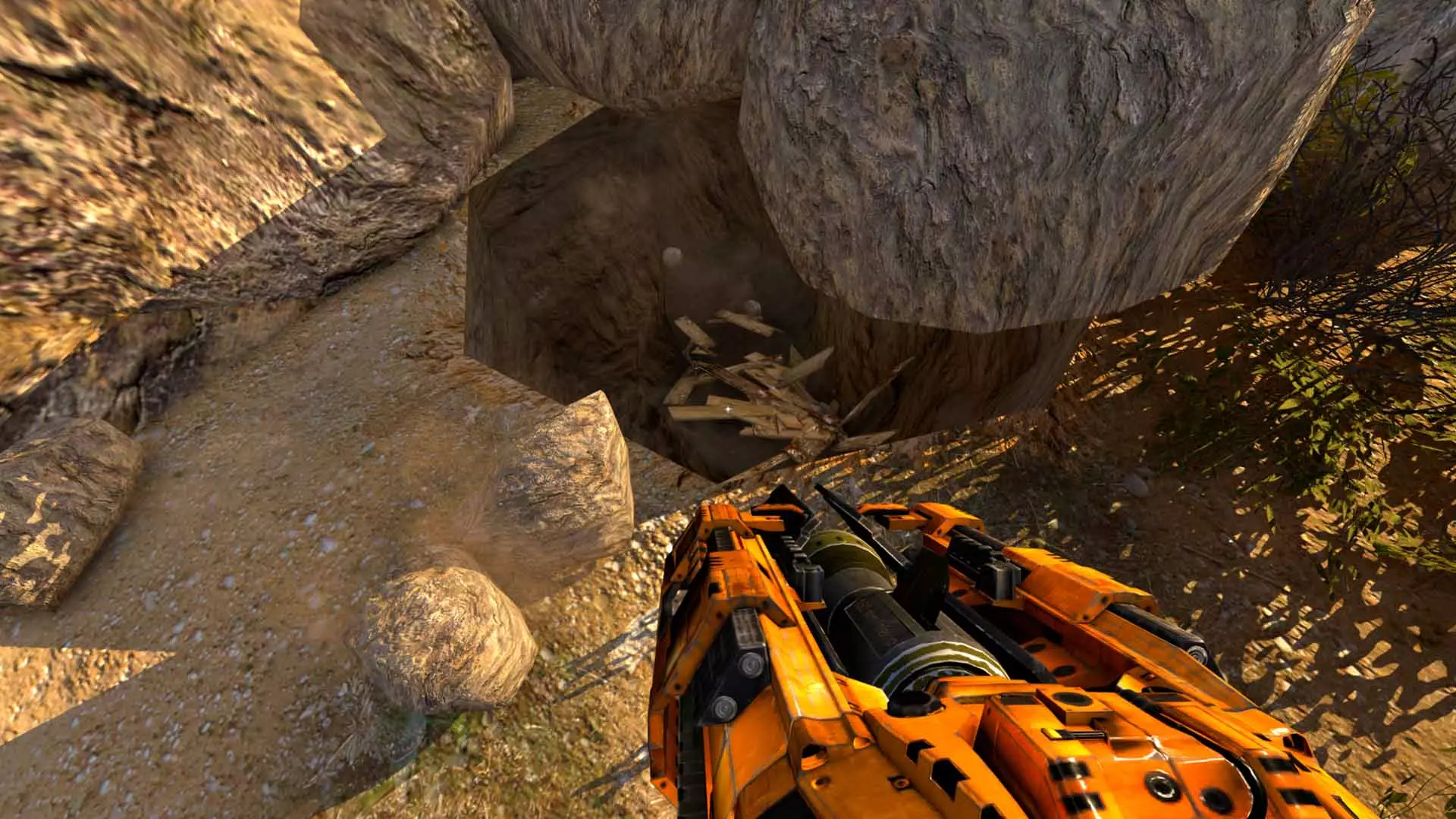 秘密7 回到岛屿更靠近起点的位置,射击下一块石头。 下方会出现一条秘密隧道,里面有几发电击弹药。