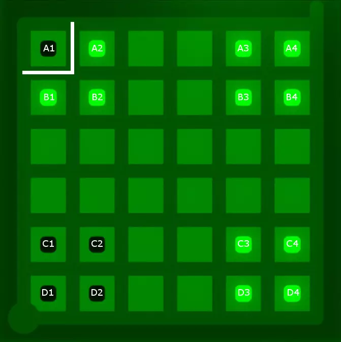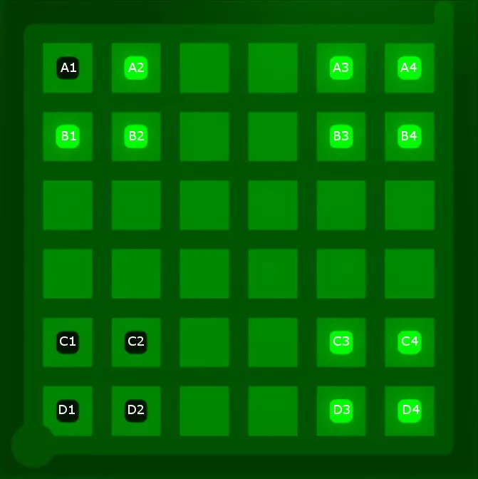 现在,当尝试为单一颜色图案应用解决方案时,很明显所有解决方案图案都必须得到满足。但如何组合这些解决方案图案呢?只需逐步查看每个解决方案图案,并添加可以得出的结论。 1. 绿色图案结论 以下是未解决的绿色解决方案图案: