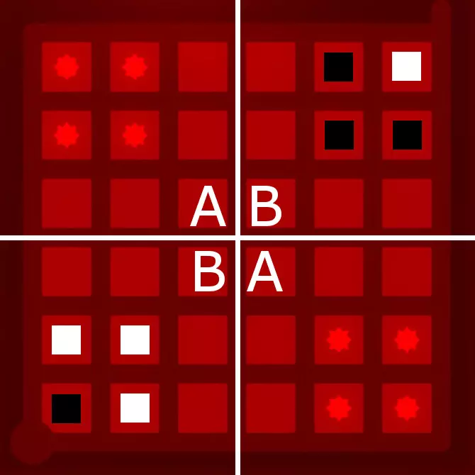 红色解决方案图案表明,B区域必须至少包含两种颜色。以下截图示例用黑色方块和白色方块展示了这两种不同的颜色。