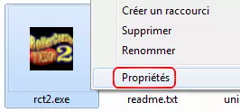 当包含游戏的窗口打开后,右键点击rct2.exe,然后点击【属性】。