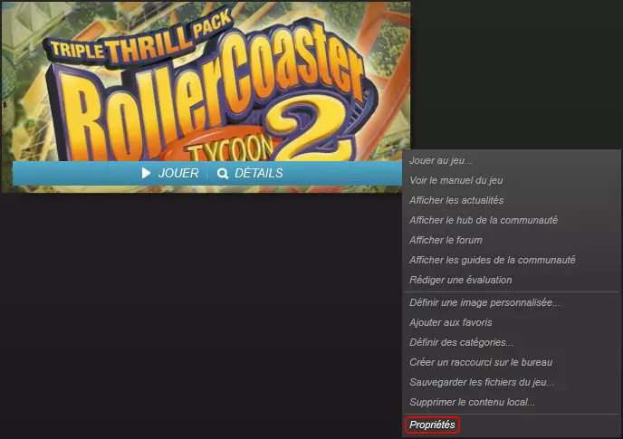 好了,您的游戏现在已准备就绪! 无法初始化图形系统 如果启动游戏时出现“Unable to initialize graphics systems”错误窗口,您很可能使用的是Windows 8系统。 首先,在您的游戏库中右键点击《过山车大亨2》,然后点击属性。