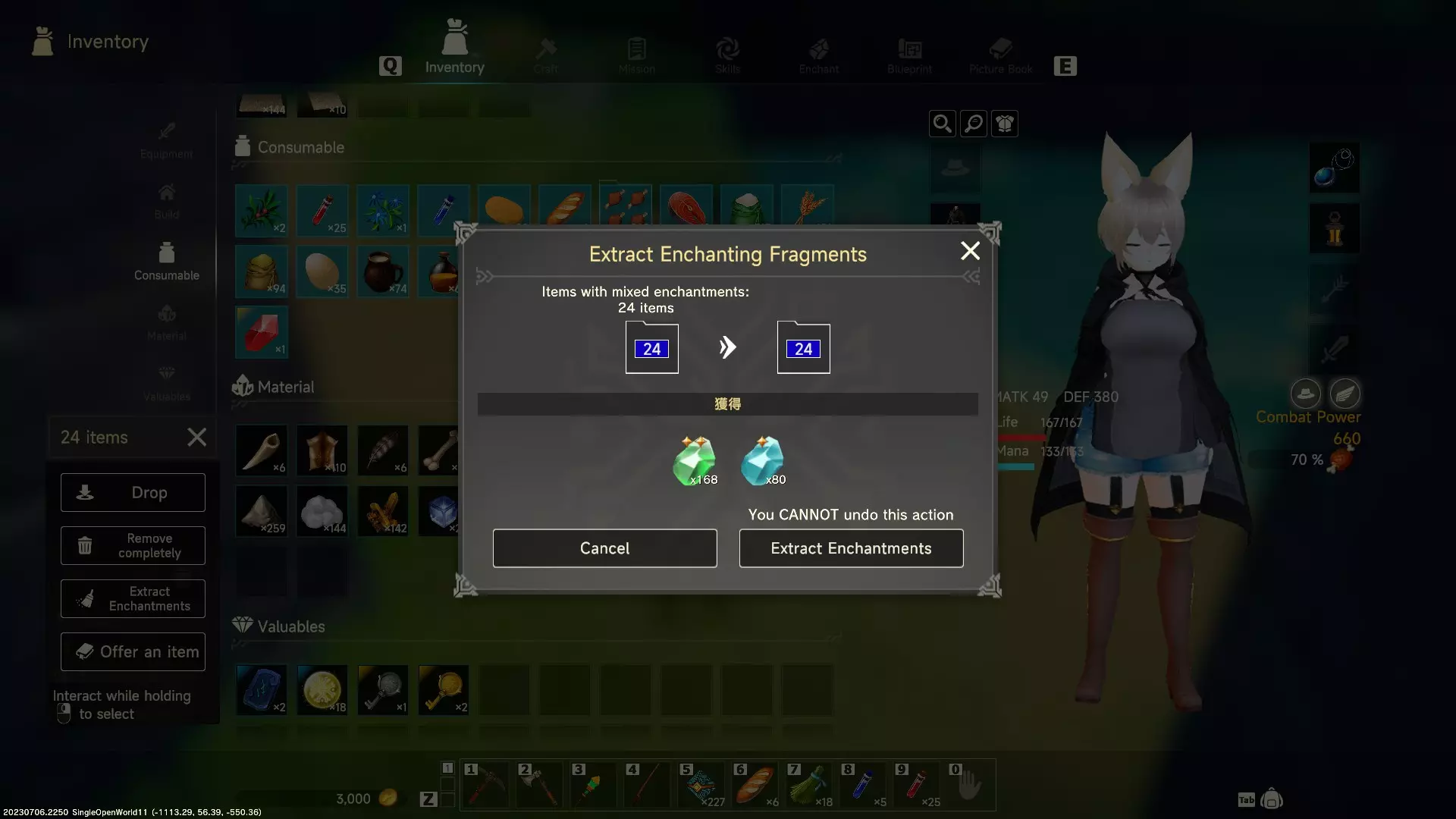 下面我将尽力介绍我所了解的新附魔系统基础知识。 简介 在本指南中,我会尽力分享在最近的开放世界更新中,我对新附魔系统的了解。幸运的是,这个新附魔系统让获取附魔以及将其应用到装备上的过程比以往更加简单。 获取附魔 这是比较简单的部分。 游戏中掉落的任何物品都可能带有附魔。这些物品上的附魔可以被提取为碎片,而这些碎片在为其他物品施加相同效果时会被消耗。 例子包括: - 生肉和鱼 - crafting材料 - 武器和 armor - 附魔卷轴 不过附魔卷轴在使用时会被直接消耗。提取碎片可通过长按选中背包中的魔法物品,然后从右键菜单中选择【提取】来完成。