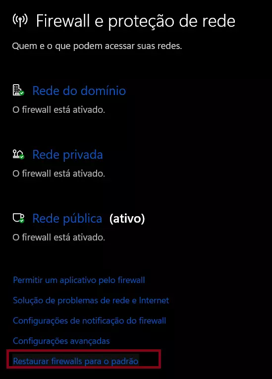 3. 选择【将防火墙恢复为默认设置】