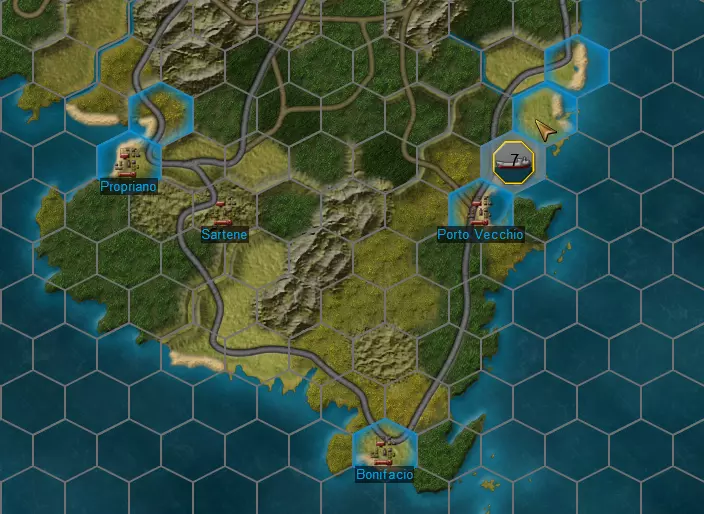 0.1.1. 场景类型: 标准:标准场景允许任何兵力配置组合,涵盖不同国家和年份。 历史:历史场景在【Combined Arms Operations Series】中重现历史战役,如加扎拉战役或十字军行动。兵力部署、增援时间表和训练水平均反映各场景的历史情况。 0.1.2. 地图: 【Combined Arms Operations Series】中的可用地图列表。部分地图仅在标准场景中可用,且部分游戏模式(如入侵)并非在所有地图均可游玩。 0.1.3. 游戏模式: 可选择的游戏模式,仅在创建多人场景时相关。游戏模式包括: 单人:所有单人场景的默认选项。 多人:与另一名人类对手进行正面交锋。热座模式:本地与其他玩家进行面对面对战,也可与自己对战以进行练习或测试。 合作模式:与其他玩家合作对抗AI。 0.1.4 目标: 遭遇战:遭遇战场景围绕一个随机选择的目标展开,该目标在游戏开始时由防守方控制。游戏结束时控制该目标的一方获胜。 遭遇交战:遭遇交战场景围绕一个随机选择的目标展开,游戏开始时双方均不控制该目标。游戏结束时控制该目标的一方获胜。 进攻:在进攻场景中,双方争夺整个地图的控制权。锚点和降落伞标志表示增援点。每个标记或点的价格列在加号和减号按钮之间。着陆标记会自动附带10个额外的增援点,购买后会出现在部署框中。您的增援点总数也列在部署框底部。 1.1.5. 购买补充兵力:通过部队池右下角补充兵力框上的相关加号和减号按钮,按类型购买补充兵力。交叉步枪标志表示步兵,黑豹坦克标志表示装甲部队,榴弹炮标志表示炮兵部队。每个补充兵力点的价格列在加号和减号按钮之间,并根据作战序列年份进行调整。你的总补充点数显示在屏幕顶部,情报报告按钮旁边。 注意:购买或退还补充单位时按住Shift键,可一次操作10个单位。 重新打开单位池:若你退出了单位池,可在部署准备阶段的任何时候,点击屏幕右下角的【单位池】按钮(或按U键)重新打开。 1.2. 部署框:购买后,单位会出现在左上角的部署框中。现在可以选择单位并从部署框拖到你的起始 hex 上。或者,你也可以在部署框内移动单位并组建战斗群,然后再将它们部署到游戏地图上。注:可通过按下部署箱侧面的绿色【部署】按钮或按【Tab】键来打开/关闭部署箱。 1.3 选择单位/下达命令: 1.3.1 选择地面单位:双击地图或部署箱中的单个单位或单位组以选择它们。被选中的单位会在底部栏中以黄色高亮显示。左键单击底部栏中的单位可选中/取消选中该单位。 1.3.2 部署地面单位:选择单位并从部署箱拖动到己方颜色标记的部署 hex 格;蓝色玩家部署在蓝色阴影 hex 格,红色玩家部署在红色阴影 hex 格。 1.3.3 下达命令:要向整个单位组一次性下达命令,右键点击地图上的单位组,命令菜单将会弹出。要向单个单位或小团体下达命令,左键点击选择部队堆叠,然后右键点击底部栏中你想要指挥的单位。按下鼠标中键可取消选择所有单位。 1. 续:覆盖层、报告和基本单位信息 1.4.2. 覆盖层:防御方初始控制地图的大部分区域,但进攻方拥有显著的兵力优势。游戏结束时,控制51%以上胜利点的一方获胜。 入侵模式:在入侵场景中,双方争夺整个地图的控制权。防御方初始控制整个地图。进攻方拥有显著的兵力优势,但必须进行两栖登陆以建立初始立足点,然后尝试征服整个地图。游戏结束时,控制51%以上胜利点的一方获胜。 0.1.5. 战斗规模:战斗规模决定场景开始时可用的初始点数。战斗规模不影响游戏开始后的征用点收入。师级:小型交战,双方平均各1个师。 特遣队:小型交战,双方平均各2个师。推荐新手玩家以此作为初始战斗规模。 军级:中型交战,双方平均各3-4个师。 军级加强:大型交战,双方平均各6个师。 集团军级:超大型交战,双方平均各9个或更多师。在此战斗规模下,对抗AI对手时的回合结算时间会比平时长得多。 0.1.6. 其他场景选项: 阵营:选择进攻方或防守方。在遭遇战中,“进攻方”和“防守方”的头衔无实际意义,详见0.1.4节。 回合数:场景的回合长度。根据场景类型不同,可选长度从10回合到45回合不等。AI国家/年份:在单人游戏和合作游戏中,可在此处选择敌方AI的兵力编成和年份。 增援:启用或禁用游戏开始后的补给周期。 密码:为多人游戏设置密码,纯可选。 0.2. 补给与补充: 0.2.1. 按场景类型的补给规则: 遭遇战补给:每3回合进行一次补给周期。防御方获得相当于初始兵力点数10%的补给点。进攻方获得15%。 遭遇战补给:每2回合进行一次补给周期。双方按固定时间表获得补给点。 进攻战补给:每3回合进行一次补给周期。进攻方获得与其当前胜利点数相等的征用点数。防守方获得当前胜利点数一半的征用点数。 入侵征用:征用周期每3回合发生一次。进攻方获得与其当前胜利点数相等的征用点数。防守方获得当前胜利点数一半的征用点数。 0.2.2. 征用年份缩放:征用点数根据作战年份进行缩放。由于此机制,场景配置文件中的征用值或通过胜利点数累加手动计算得出的征用值,可能与玩家实际获得的数值略有差异。例如,1940年的20点征用值在1941年相当于23点,在1944年则相当于31.6点。详情请见下表。年度征用规模系数表: 年份 规模系数 1939 0.81 1940 1 1941 1.15 1942 1.35 1943 1.47 1944 1.58 1945 1.58 0.2.3. 补充点分配: 在历史场景中,补充点会自动分配到每个玩家的全局补充池。在标准场景中,补充点必须购买(参见1.1.5节)。 0.2.4. 补充
