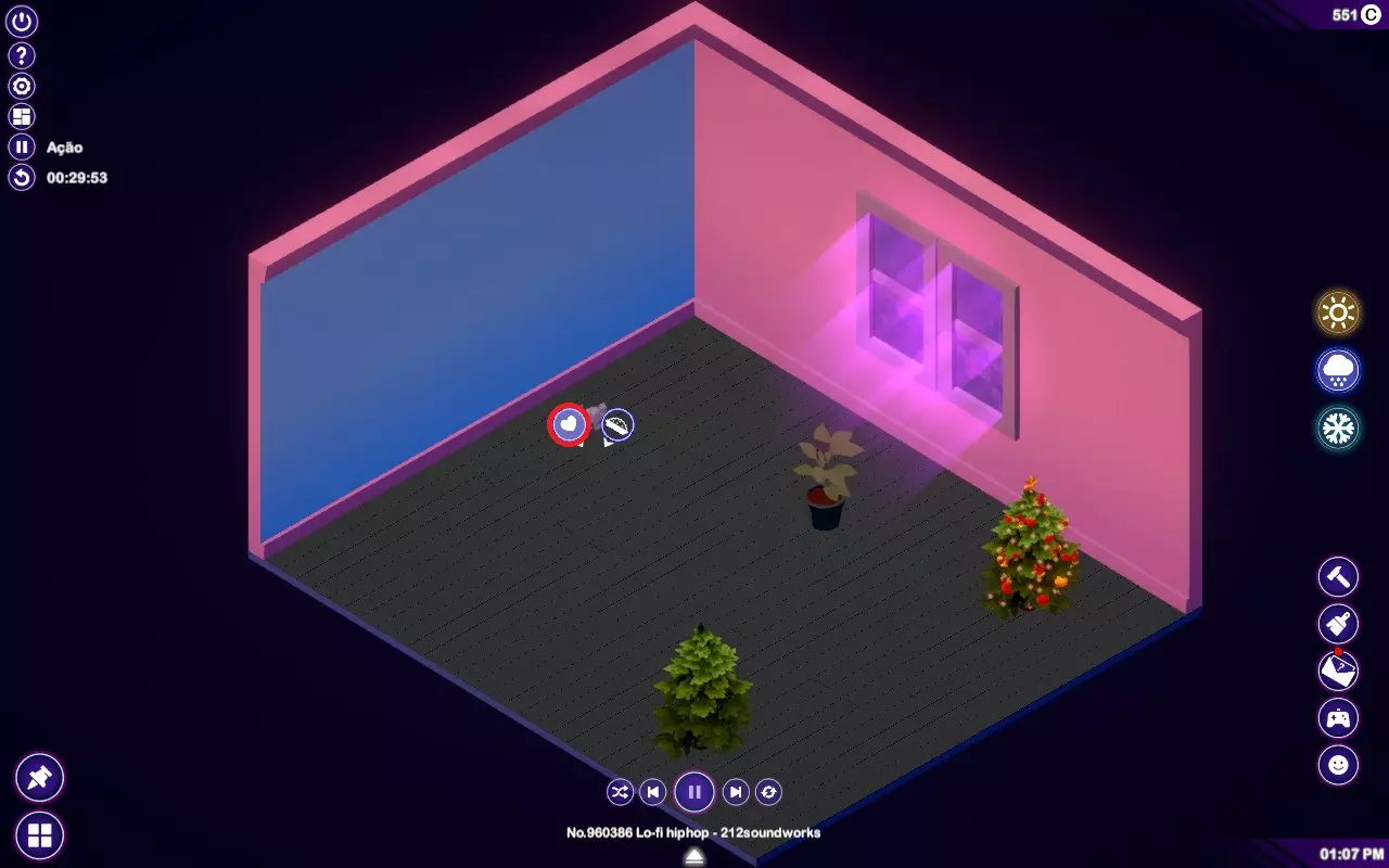 拐个弯,进入你的成就王国! 天气 通过休闲角落右侧的按钮选择任意天气。