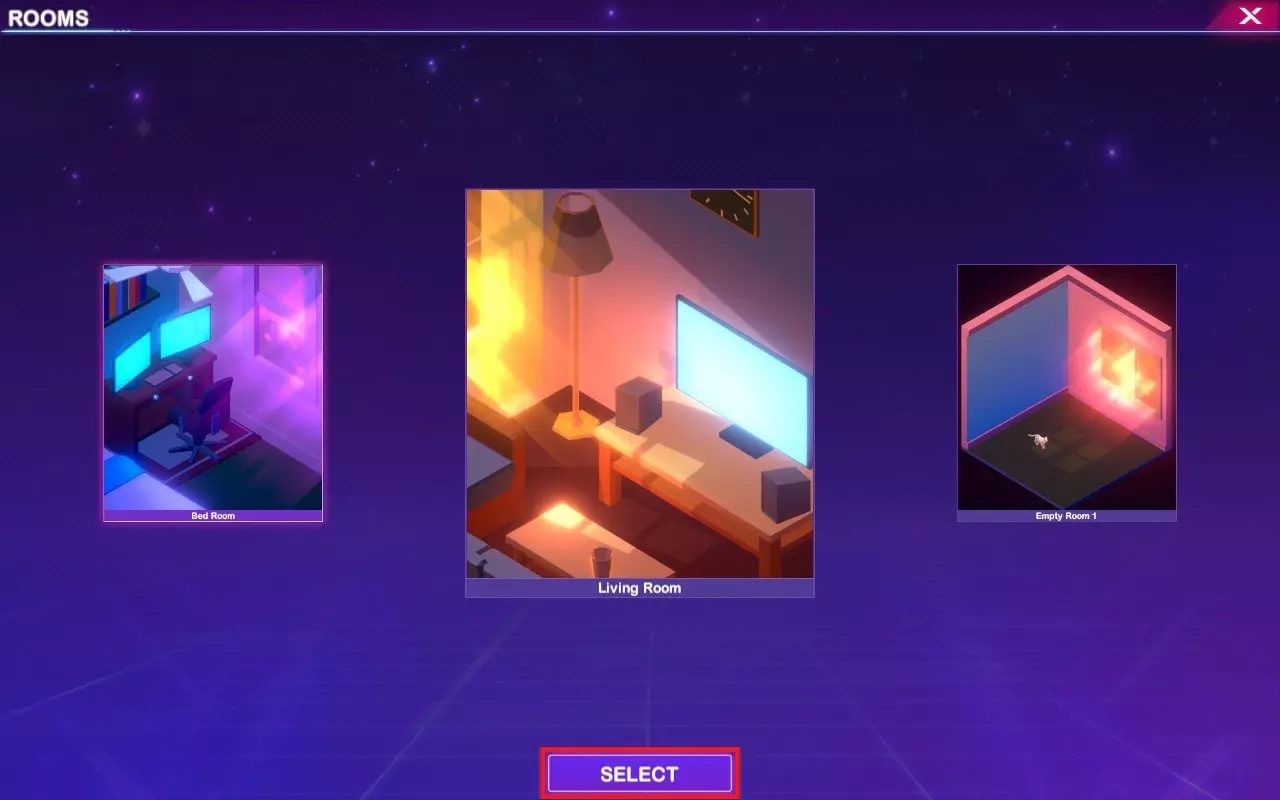 装饰:放置一个装饰物 我的专属房间 进入房间选择界面,从四个选项中选择一个空房间并放置任意装饰物品。
