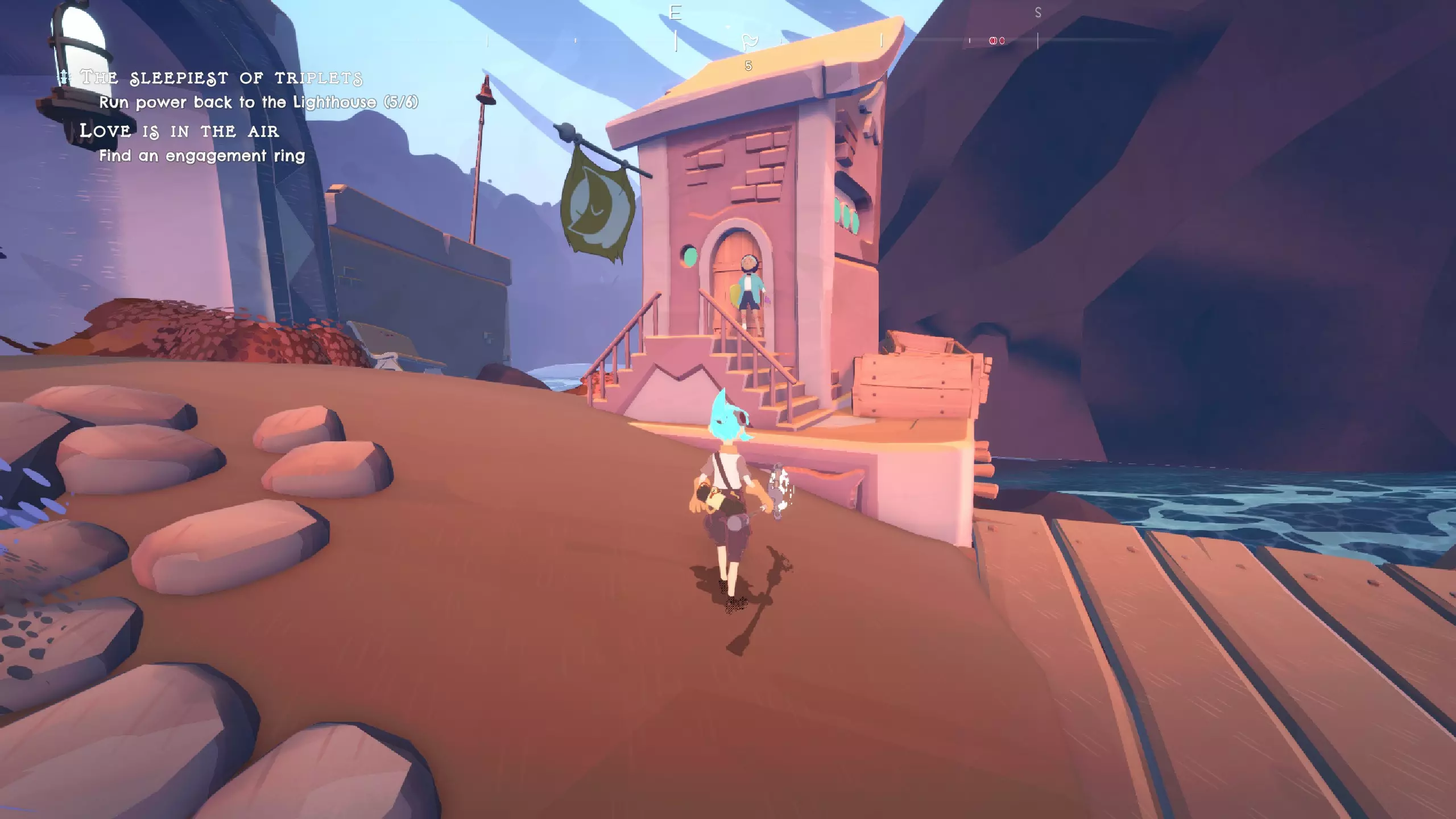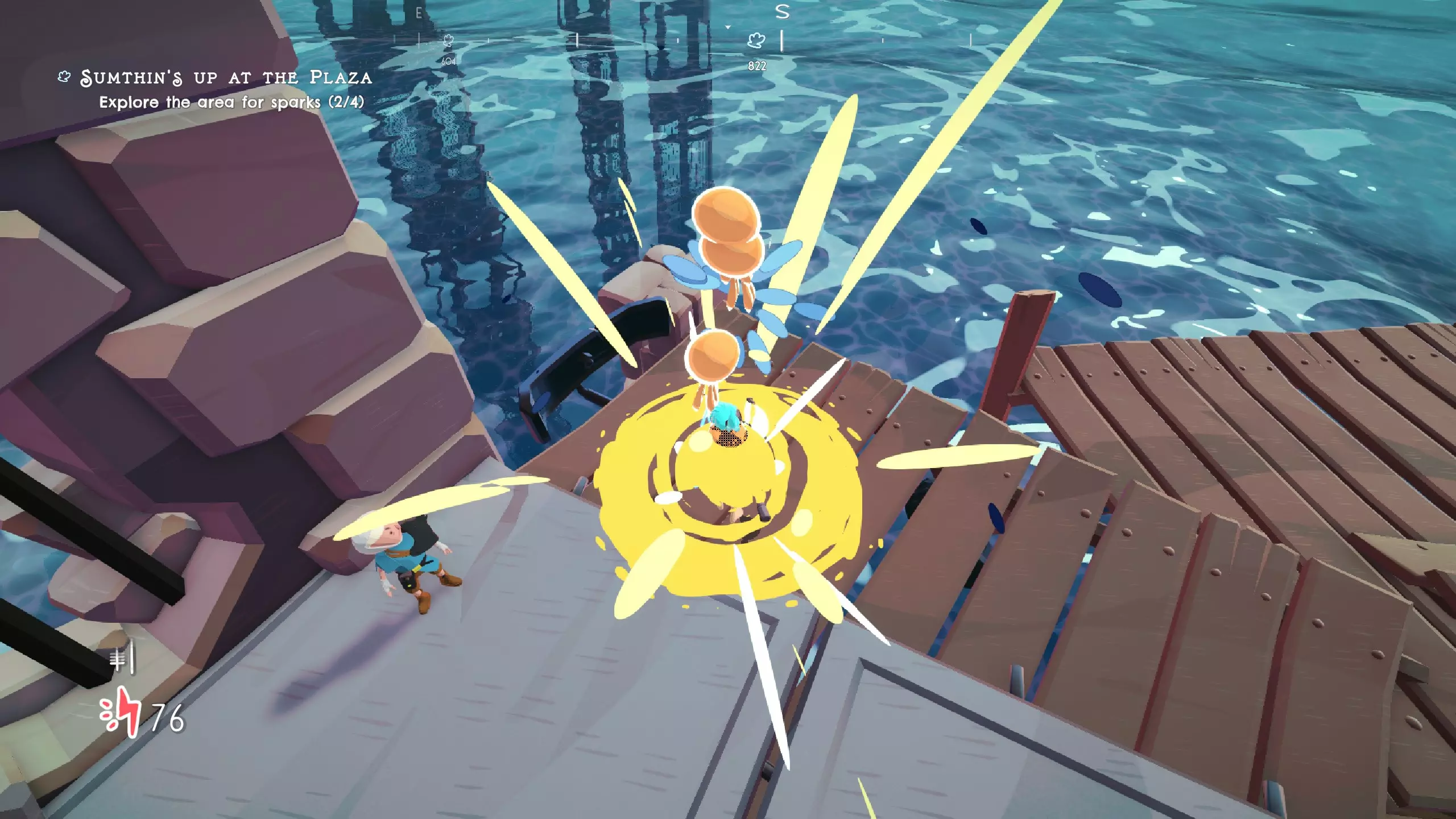All Baine, No Pain 听贝恩斯的所有双关语 流程成就 这些成就基本打通关就有,游戏的成就都比较简单,跟着视频流程或者自己通关都很简单。 提示与技巧1:F冲刺,Ctrl下砸(建议改键,我改成Q,地图改成tab,可按个人习惯决定是否改键),原地按是旋风斩拿来打群怪。游戏战斗很简单,跳着躲攻击都能打,而且很多时候不用打直接跑过去即可。2.在水上空中时按Shift键可以下潜,松开后会从水里起跳;在水里冲刺时长按空格蓄能起跳,合理运用冲刺和起跳能获得爽快的冲浪跑酷体验。 3.游玩过程中多转动视角向上看,因为很多跳跃点都在头顶,对着发光提示按E键就能飞过去。 4.游戏设计较为简单,冲浪跑酷是比较爽快的部分,其他方面表现一般,但流程不长,值得体验。 5.游戏支线任务主要奖励购买服装的货币,可做可不做,基本都是寻找物品的无聊任务。