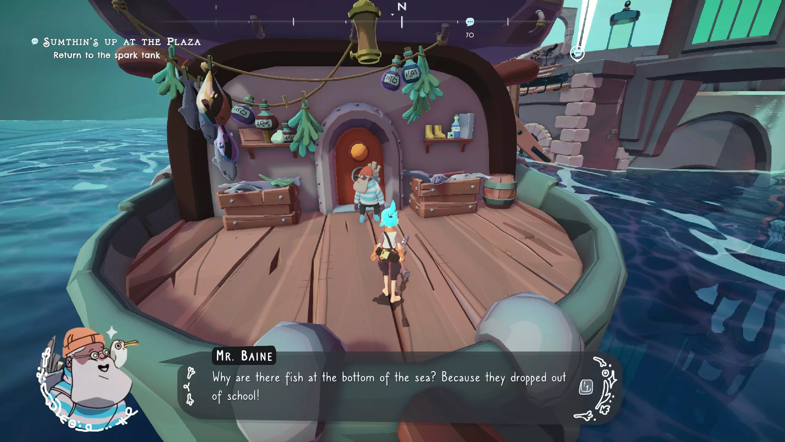All Baine, No Pain 听贝恩斯(Baines)的双关语 贝恩斯是一个卖衣服的商人,流程中会遇到,每到一个新的地方都会跟着过来,一直来回听他说话即可,他有15个俏皮话(双关语)全部听完就能解锁成就。 All Baine, No Pain 听贝恩斯(Baines)的双关语