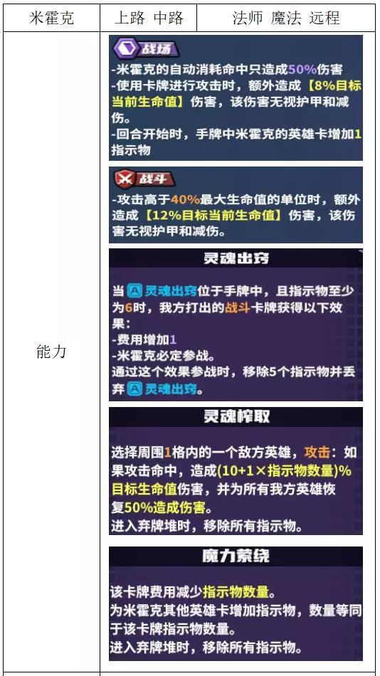 关键词:无敌、真伤、立塔 评价:良好。自保能力非常强的大后期核心,卡牌伤害全部与攻击力挂钩,适合在下路搭配防守型辅助进行发育,真伤特性使其在打团时也有一定作用。 米霍克