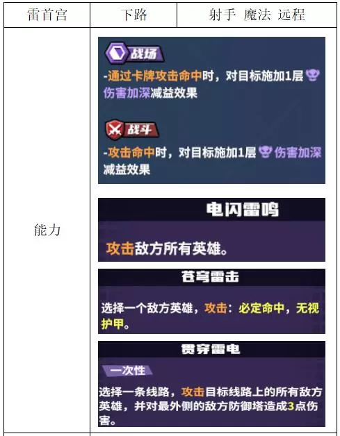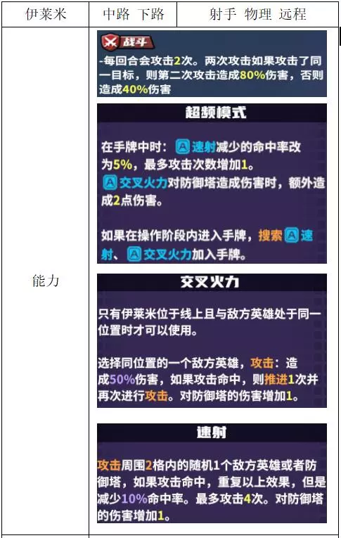 关键词:真伤 评价:良好。自带高暴击的进攻型战士,机动性欠佳,适合走中路。克制免伤或高护甲单位,例如魅魔、莱恩哈特。