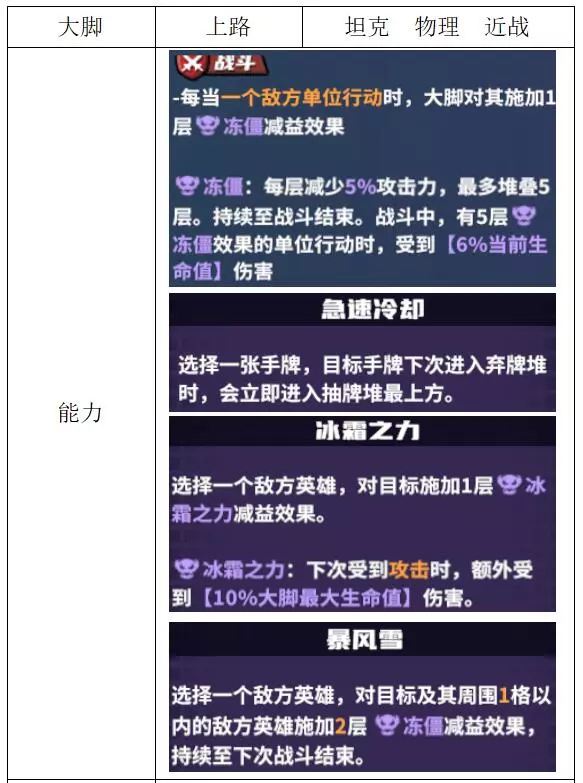 关键词:加盾、反伤、推塔 评价:良好。反伤坦克可以对抗高攻刺客,最强盾卡能在团战前给核心位挂上以保命。 大脚
