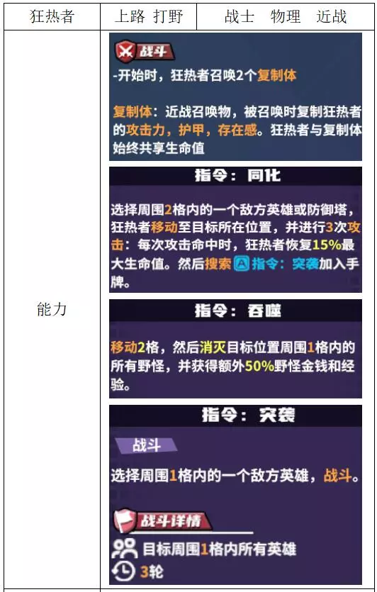 关键词:斩杀、抽卡 评价:良好。进攻型战士,斩杀机制不吃资源可放养,小团作战能力极强,也适合用于启动收割型英雄。 【狂热者】