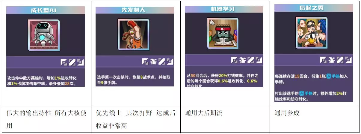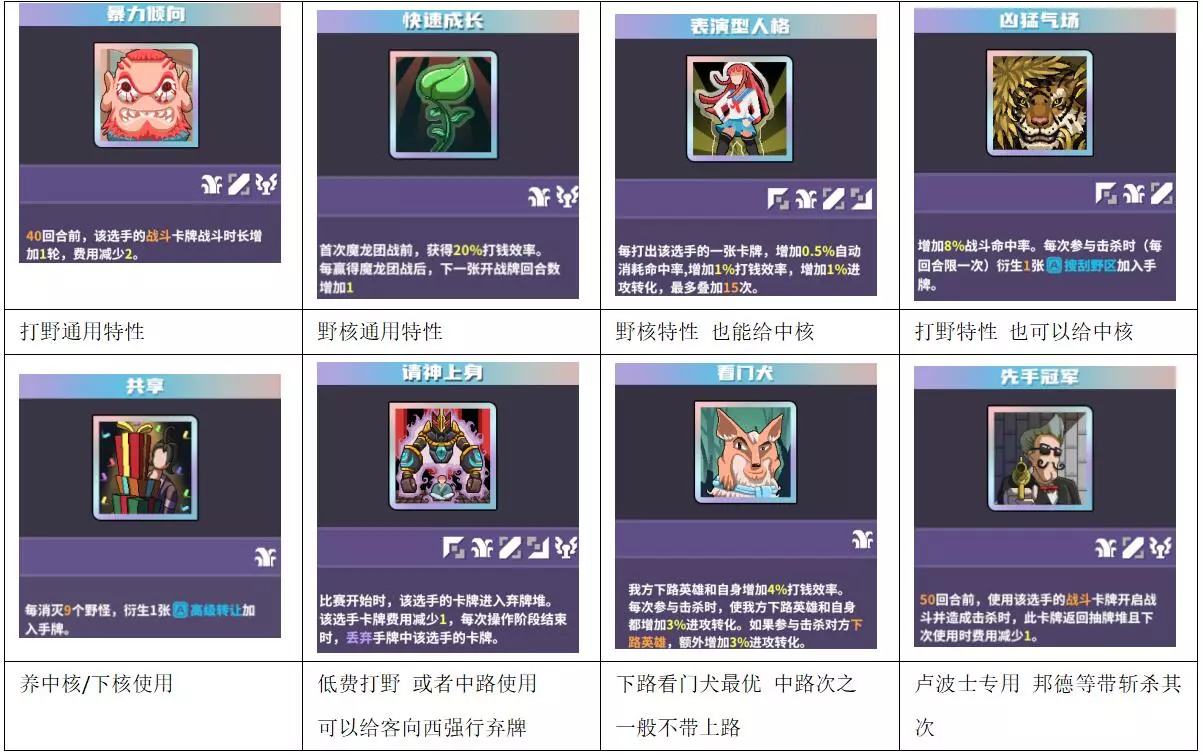 通用辅助位的神特性较多,因此功能型特性基本给中上路使用