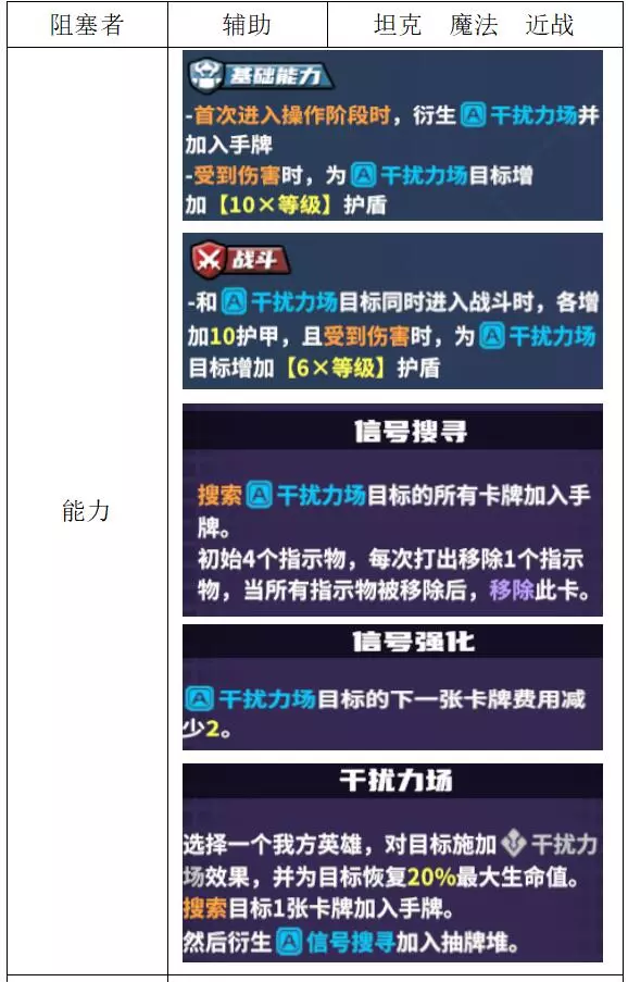 关键词:降攻 评价:良好。强大的机制型坦克,全场30%的降攻效果和百分比扣血能力,是多动症敌人的克星,不过经常会被电脑禁用。 名称:阻塞者