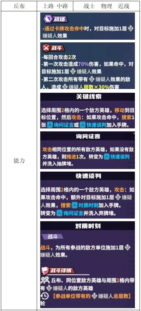 关键词:偷偷怪 评价:一般,偏防守型战士。该角色依赖敌方属性,自身对资源需求较低。除用于针对数值怪外,作用过于类似超级兵。 丘布