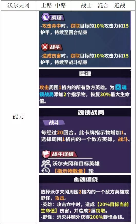 关键词:易伤 评价:良好。单次易伤的进攻型辅助,百分比易伤不吃经济,配合斩杀收割型输出使用,可达到开局秒杀的作用。 努尔斯