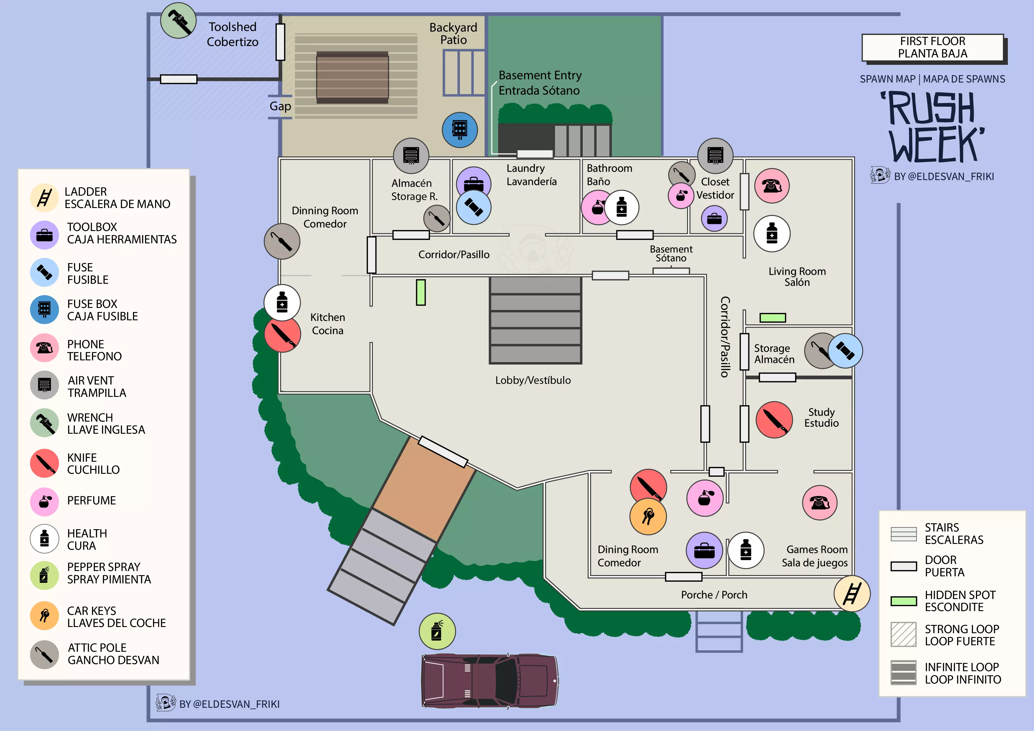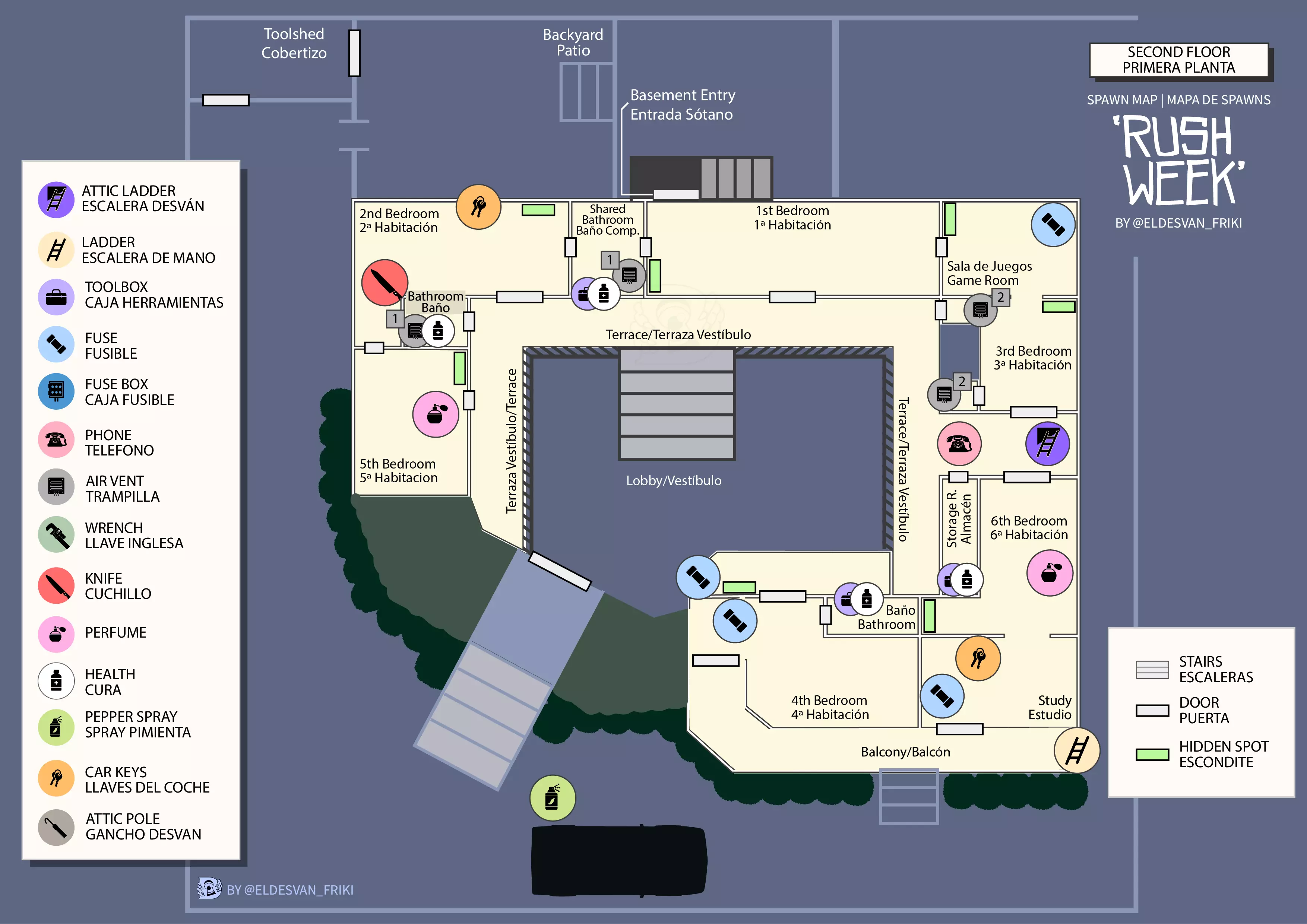 我为社区设计了这些地图。如你所见,地图也有西班牙语版本(我是一名西班牙内容创作者,所以必须这样做)。这是为所有想在【冲刺周模式】中提升水平的玩家准备的。希望你们都喜欢这些地图。 【冲刺周全出生点地图 | 一楼】