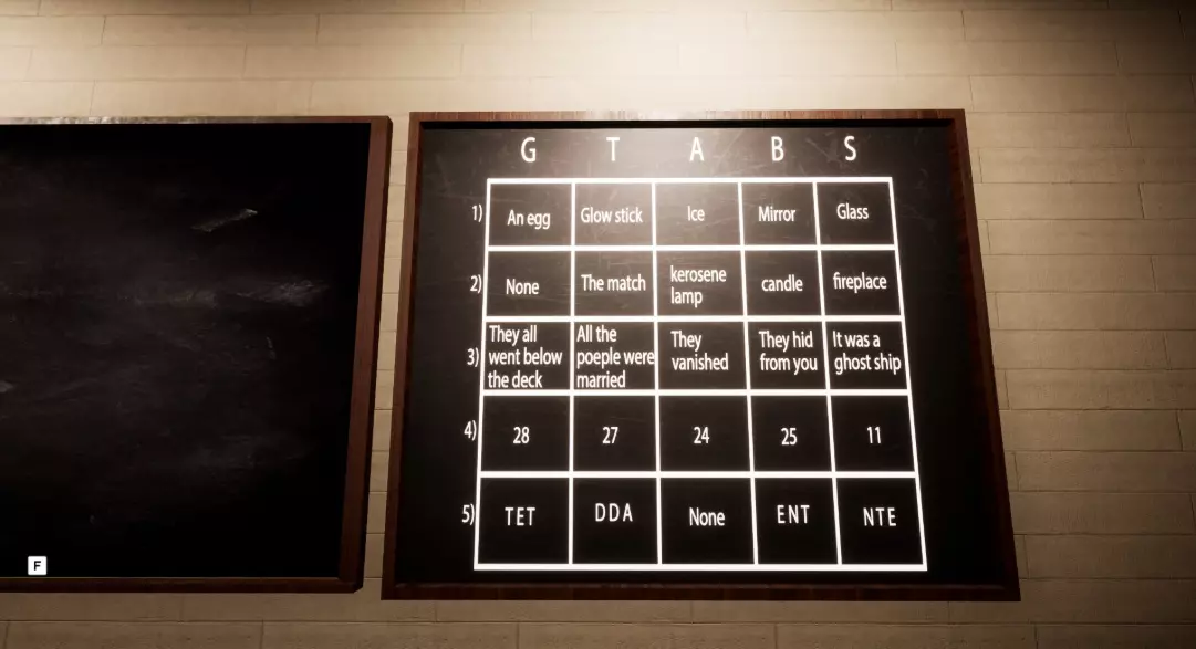紫外线手电筒。 绿宝石(记住这个物品)。12.在附近的一张课桌上,你会发现一张黑色的纸,上面会按特定顺序标记出某些课桌。 13.拿起紫外线手电筒查看那些课桌,每张课桌上都会有一个数字。根据纸上的信息和这些数字,你就能得到一个密码。