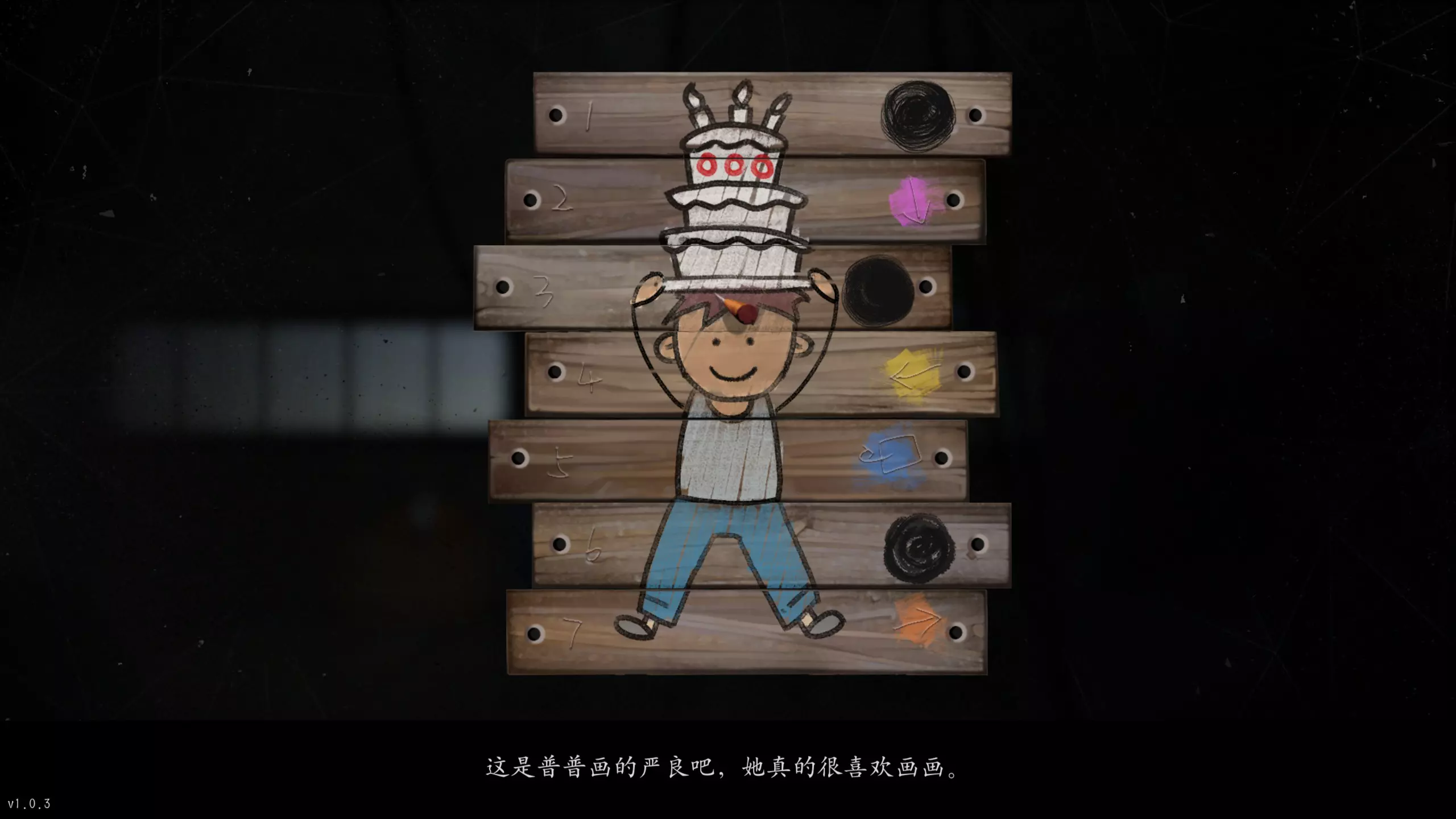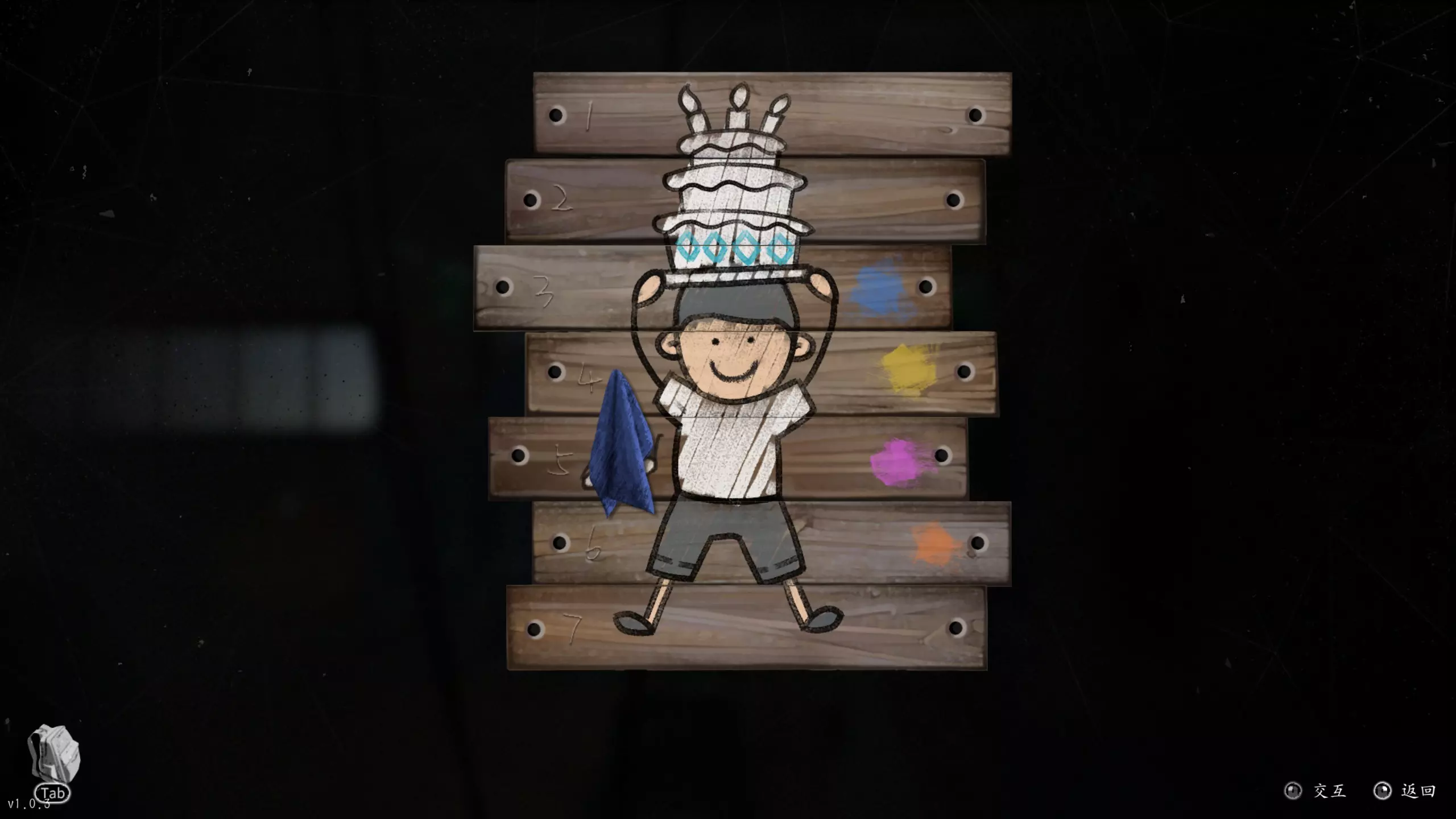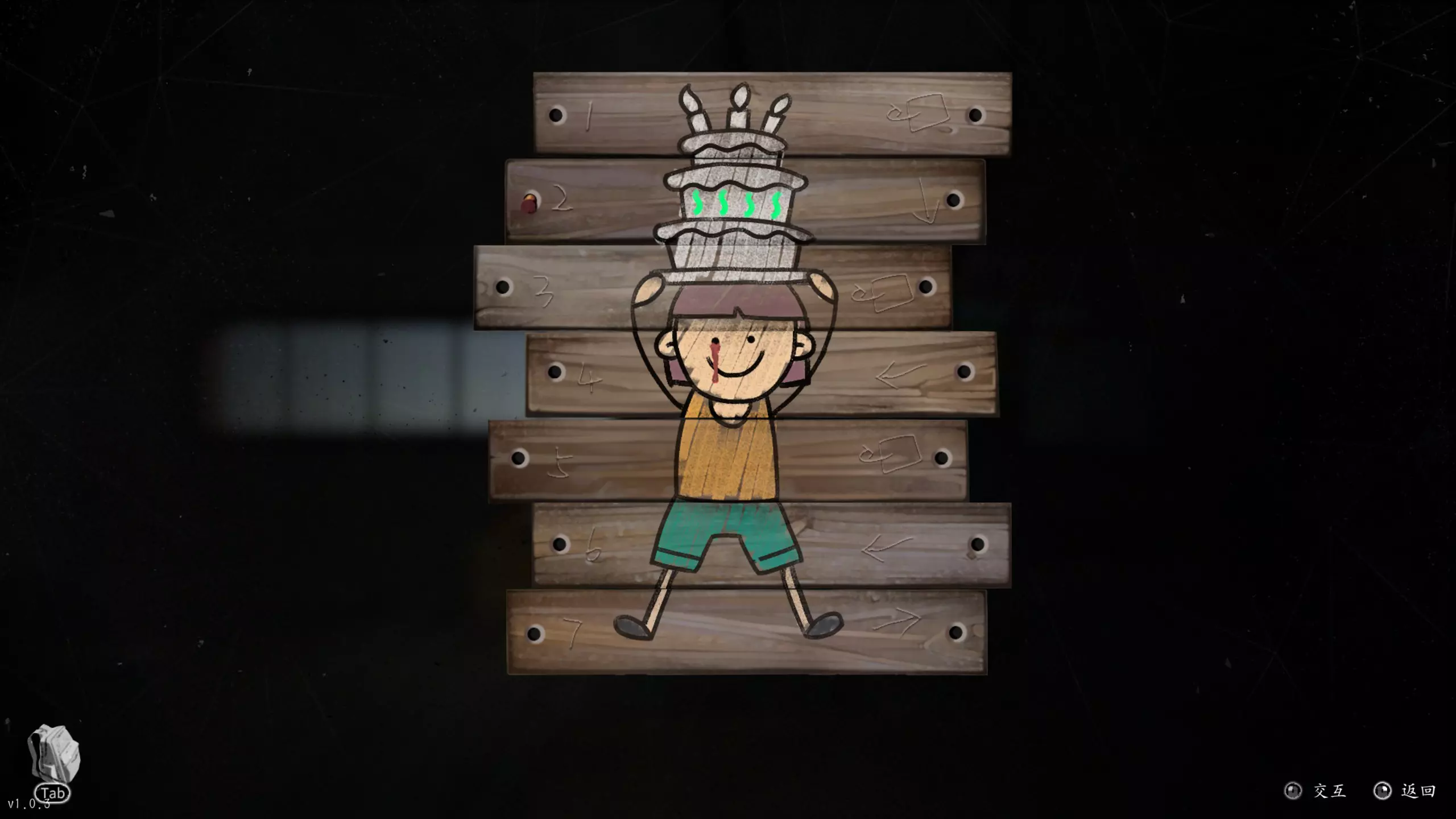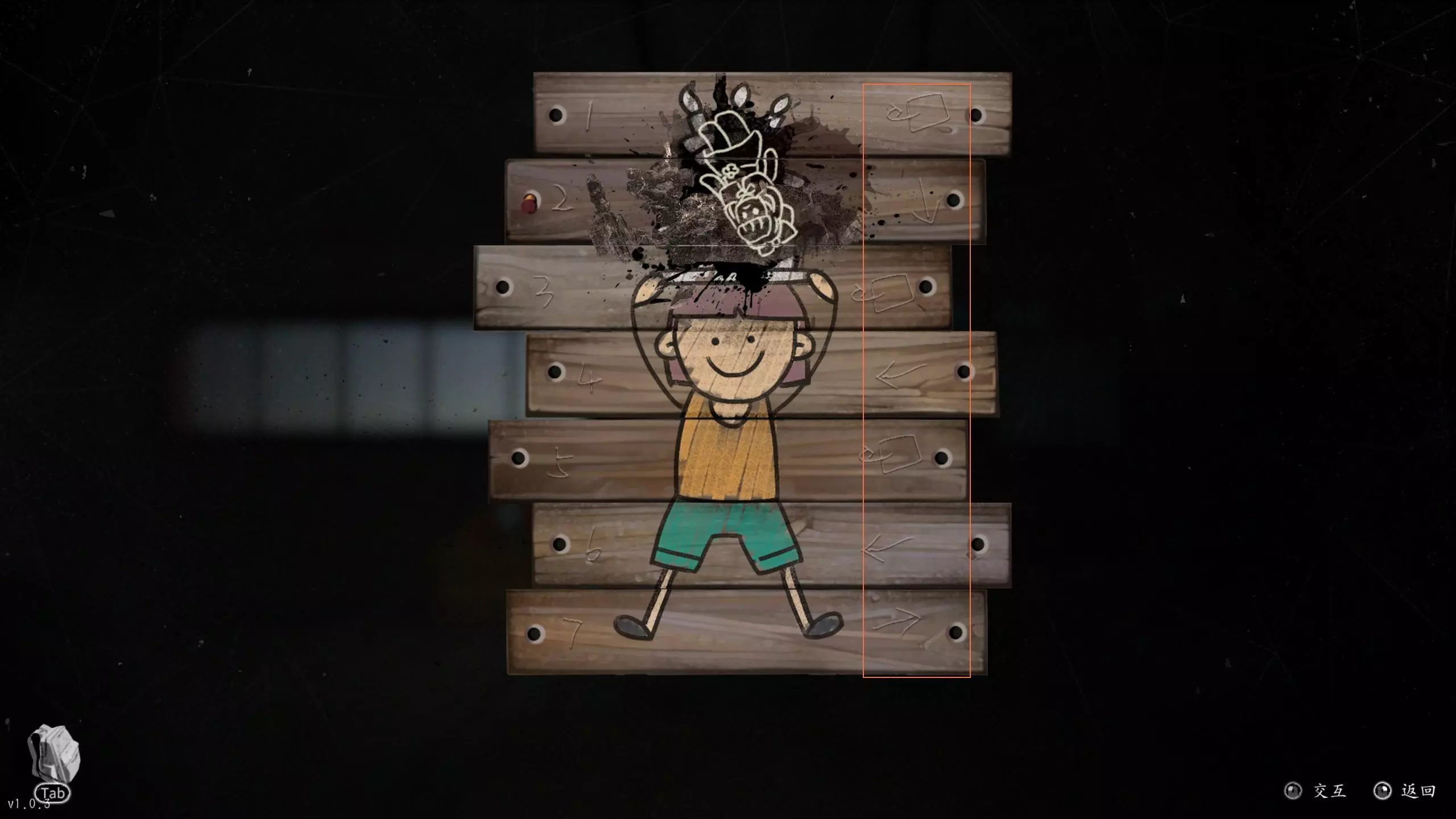 船舱内第二层阁楼上的三个涂鸦信息可得知:第二个涂鸦需根据第一个涂鸦每块木板上右侧的信息进行相应操作(选择将头像翻转、向下看、向左看、向右看),第三个涂鸦则根据破解后的第二个涂鸦上木块的颜色,按第二块、第四块、第五块、第七块木板上的颜色顺序进行相应翻转即可。