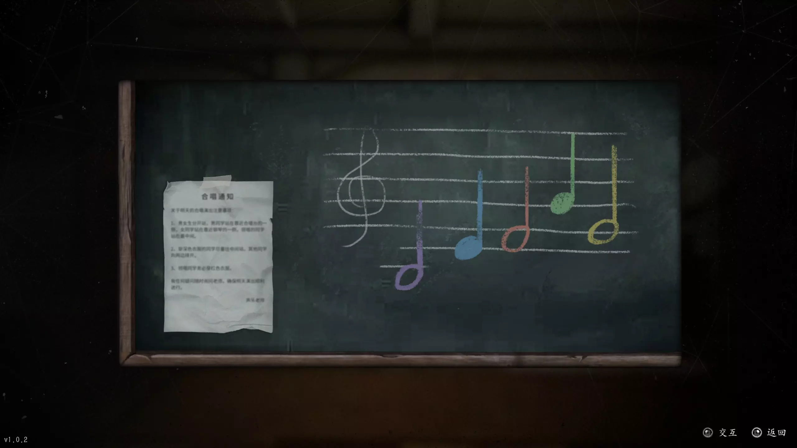 进入音乐教室后弹钢琴,根据黑板上琴谱中带有颜色的音符顺序弹奏即可。