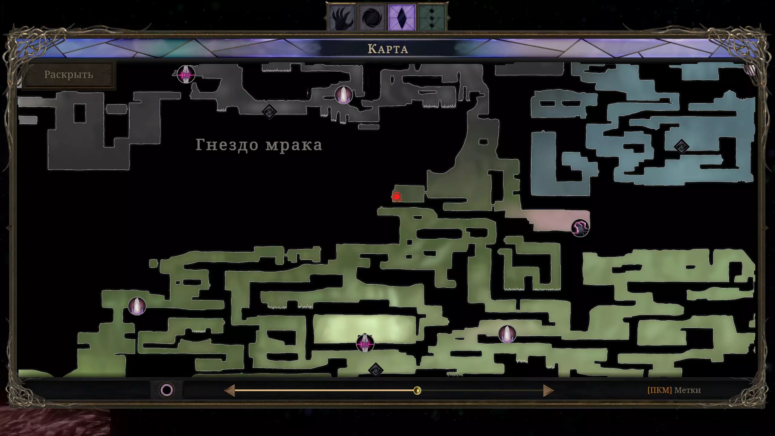 与【Род】互动。要完成此成就,需在最终区域【创造之巅】(Peak of Creation)找到它4次,并且收集游戏中所有【Zigot】,否则【Род】不会出现!其位置在截图底部用绿色标记标出。