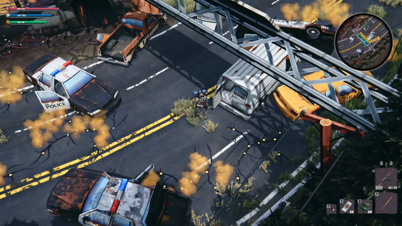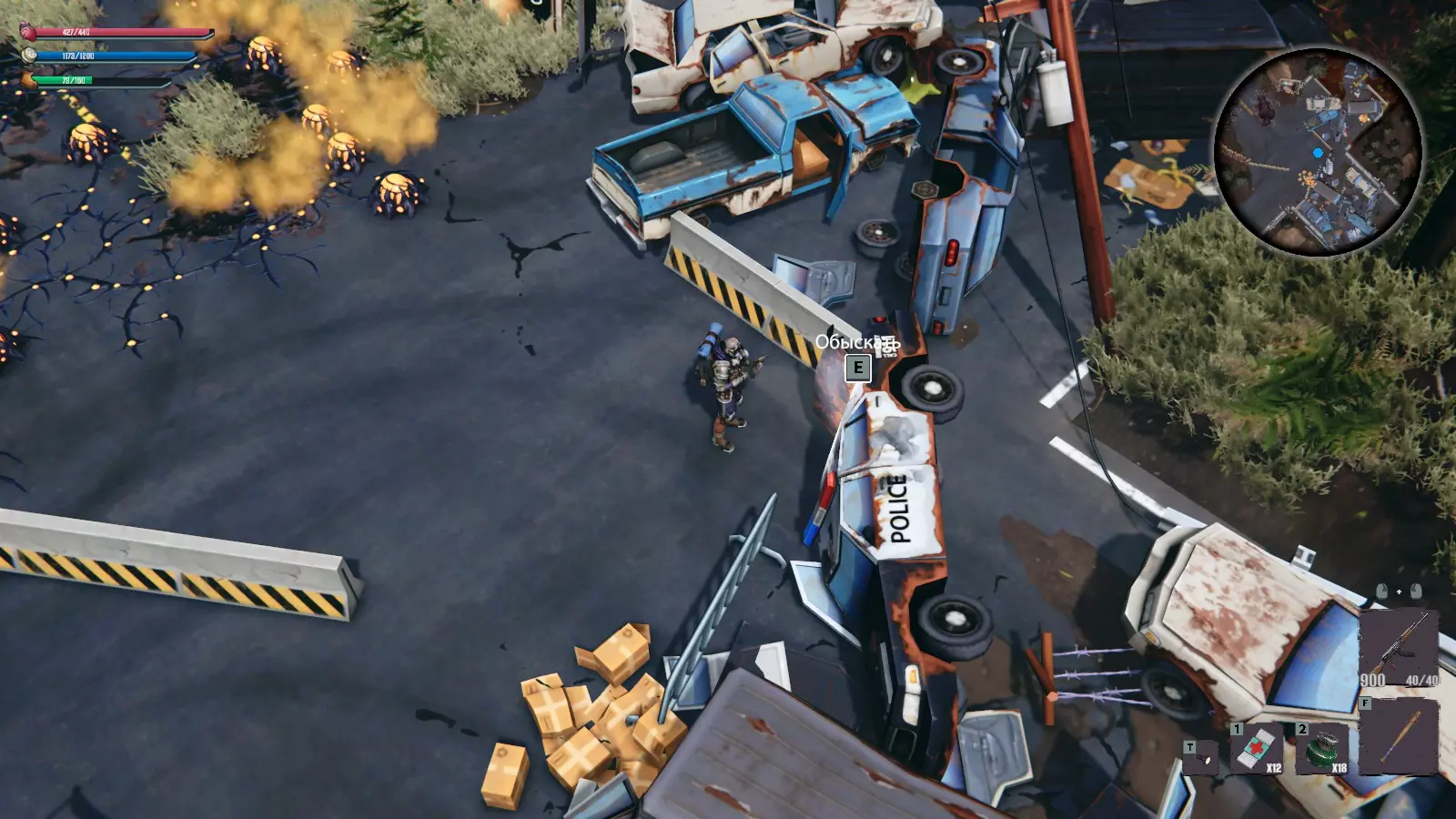 在地图的尽头有多达6辆警车——而且它们都彼此紧挨着。我们搜刮那些能提供物资的警车,跑到死胡同后再返回地堡——以便回到关卡起点。