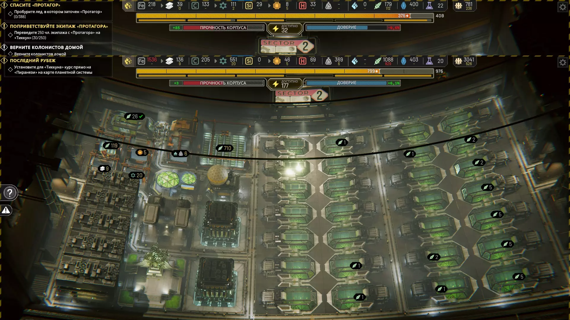有大量3级蓄电池和5个1级蓄电池。 2个殖民者培养中心。如果在研究中升级,每次可以培养400人。 玩家评论(实用) 1) 留在第一张地图(教程)直到最后,用通讯卫星彻底探索它,会发现很多新东西。2)不要囤积聚合物,不然你会像我一样傻到在游戏结束时囤积了近3000个(占了半个扇区的仓库),在建造完所有面板建筑后,即便是在最后一张地图,600-700个也完全够用,否则你根本无法处理掉多余的聚合物。 3)转向自给自足的加工厂。 4)VKD传送门总共需要3个,只有在最后一张地图才需要用到4个。 5)法律之屋(或者那个能稳定提升稳定性的建筑叫什么来着)它低于零度)完全没用,因为有外部穹顶,你在居民区建造它后,就再也不用担心稳定性了(3000人口带来的+2加成是非常强大的增益,而在情况糟糕时那不确定的+2加成不仅不总是生效,而且建筑本身还占用很多空间)。 6)(A)最后一点,反正你们也无法解锁所有科技,也可以不用费心了。该死的医疗更新。6) (B)对于完美主义者来说,可以学习所有科学知识(我除了消防相关的都学完了,懒得等)。但你不需要学习所有知识,大多数建筑升级都没用。从一开始就专注于科学建筑(每5个周期5点科学值)、科学飞船(额外15%科学值),以及研究减少所有升级费用10%的科技。到第1000个周期时,我几乎学完了所有知识。7) 不要低估海藻种植园,它们消耗的水量极少,却能轻松养活3000人。我直到最后才明白这一点,因此本指南中的2号区域效率并不高。 8) 无人机是最重要的建筑之一,我几乎在每个新区域都会立即建造,它们能解决所有物流问题。之后再建造法律之屋。9) 完成任务只需3000人,而“仅一名工人获得”的规则并不那么重要,因为你将需要近2000名殖民者,所以直接批量处理所有人即可。(作者补充:因此在最后一章要准备解冻大量人员)。 10) 作者完全、绝对正确,建筑布局确实需要你亲自设计。比如我最初只是借鉴了他第一和第二扇区的布局思路,但最终到游戏结束时,我连这些布局也都进行了修改。用脑子思考。