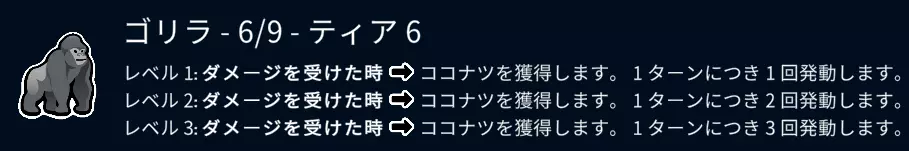 必须受到伤害且未能存活时才能发动能力,这一点是短板。让我们用猴子和食物好好培养吧。