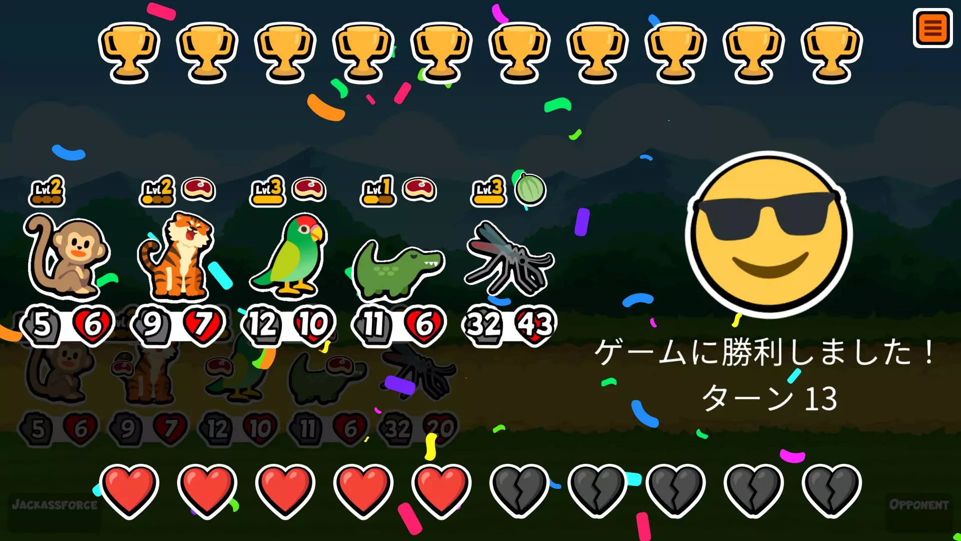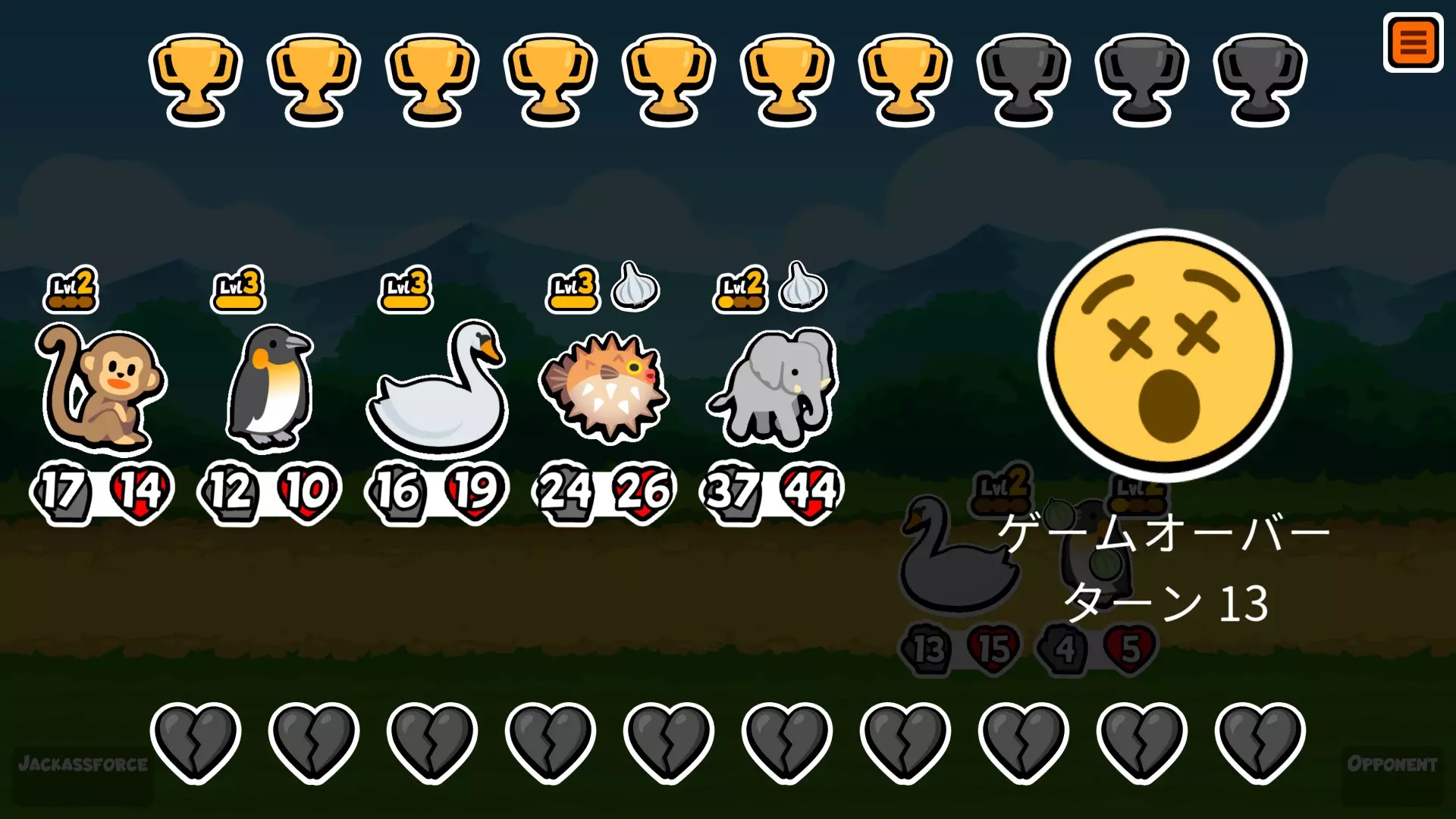 【第16回合】猴子 中途发现2级企鹅来不及培养,所以换成了3只猴子。 胜利。