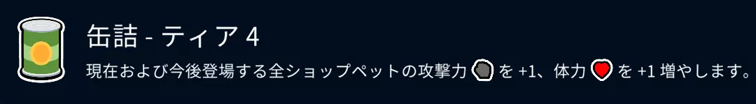 欢迎来到第11回合。接下来只需再赢10场即可。 6阶宠物大多从1级开始就很强。 另外,如果从第7回合开始坚持吃罐头,商店里宠物的属性值应该能达到10到20左右。