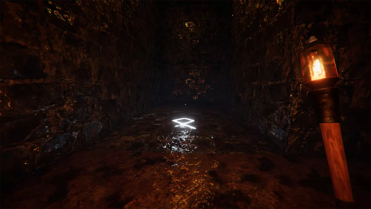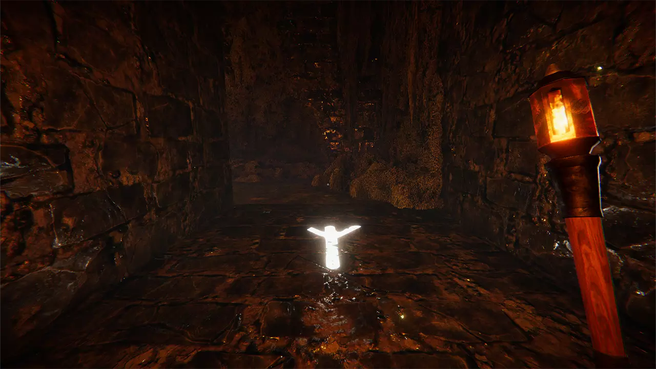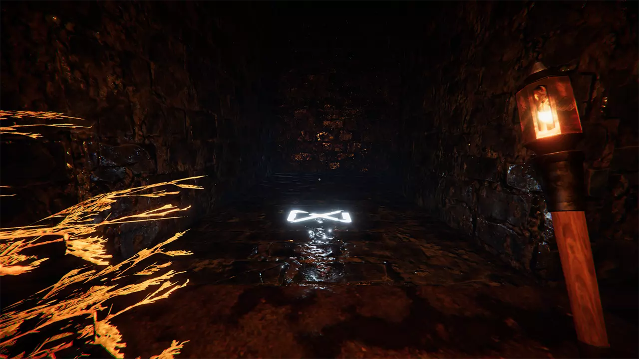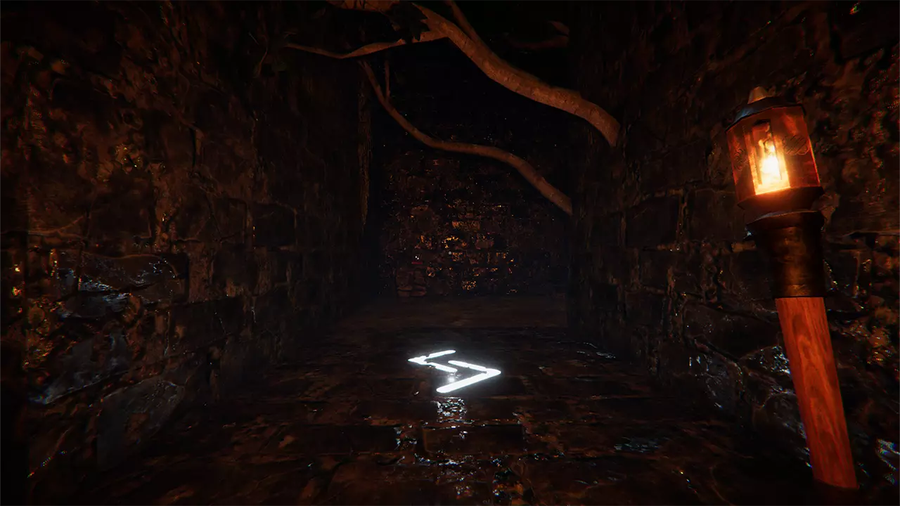 谜题元素: 两名玩家身处一个地下迷宫,迷宫由一系列方形房间组成;每个房间有一个入口和三个出口。 灯光提示: 玩家1前室的文字提示,每位玩家必须切换火炬才能解开谜题。 重要提示: 每次玩家被传送回前室时,地下的路径都会重新排列。 在每个房间中,只有一名玩家的一侧拥有两人继续前进所需的信息。 关键提示: 玩家2前室的文字提示,两名玩家需要从相对于入口的同一方向离开房间。 解谜方法: 每个房间中,只有一名玩家的一侧有球体;当他们的火炬关闭时,三个球体中的一个会亮起,指示正确的出口。两名玩家必须通过相对于房间入口的同一个出口离开。 玩家需要穿过四个房间,到达地下迷宫的尽头,然后继续前进,直到一堵墙在他们身后关闭。当两名玩家身后的迷宫都关闭后,谜题即完成。 在这一点上,你已经完成了所有谜题,现在可以在白天自由探索迷宫。返回主广场并进入传送门,以一段无法跳过的最终音频过场动画结束游戏。两名玩家都完成此操作后,可以使用暂停菜单返回主菜单。