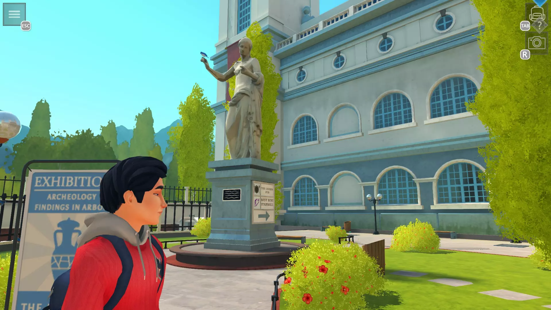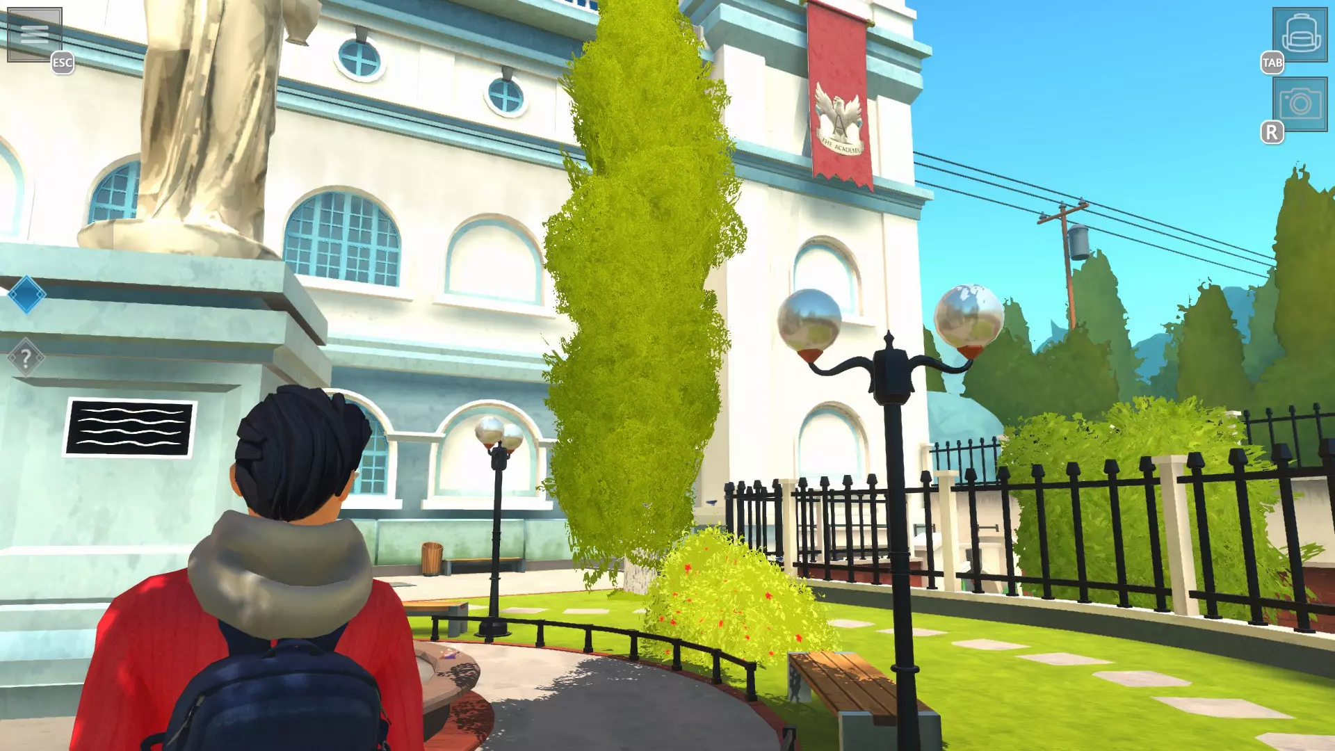 2. 左侧雕像长凳旁边