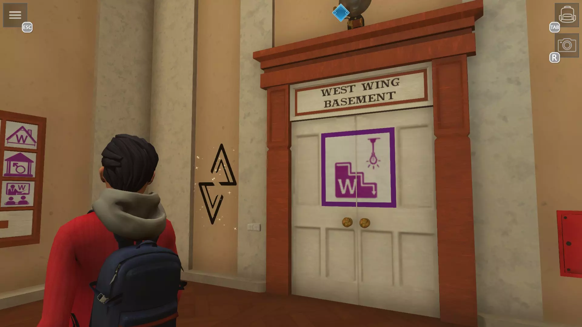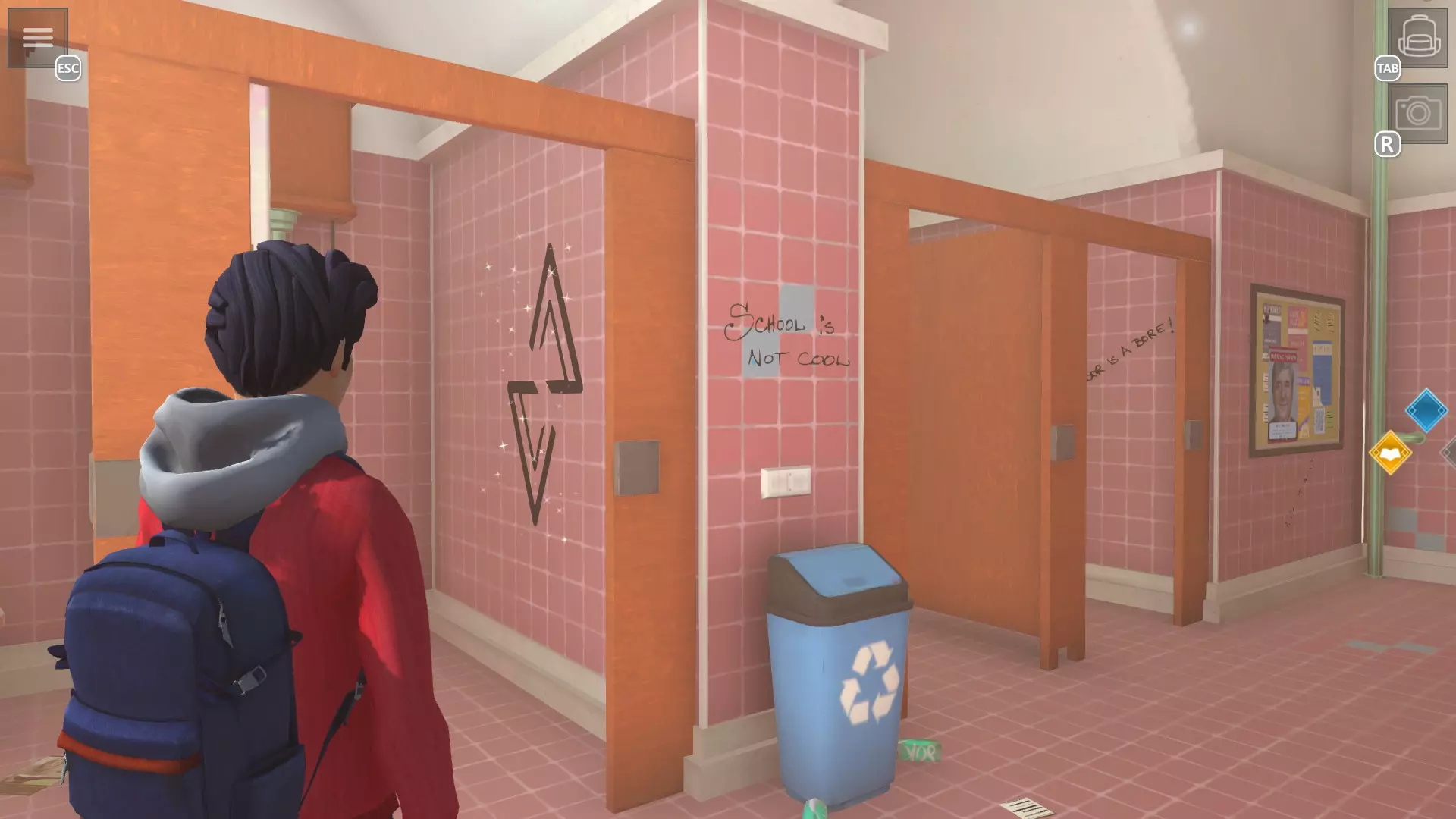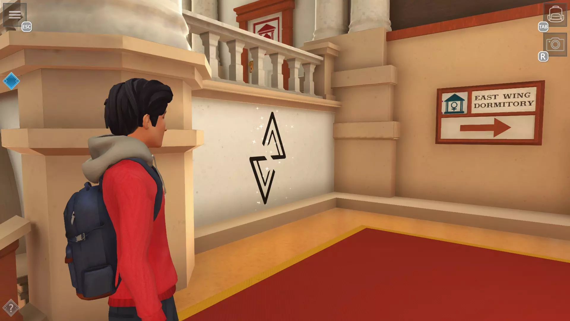 艺术攻击 拍摄所有涂鸦照片 提示:已拍摄过的涂鸦会消失,保存后会显示已在相册中 【大礼堂】1. 通往西侧宿舍的楼梯上方