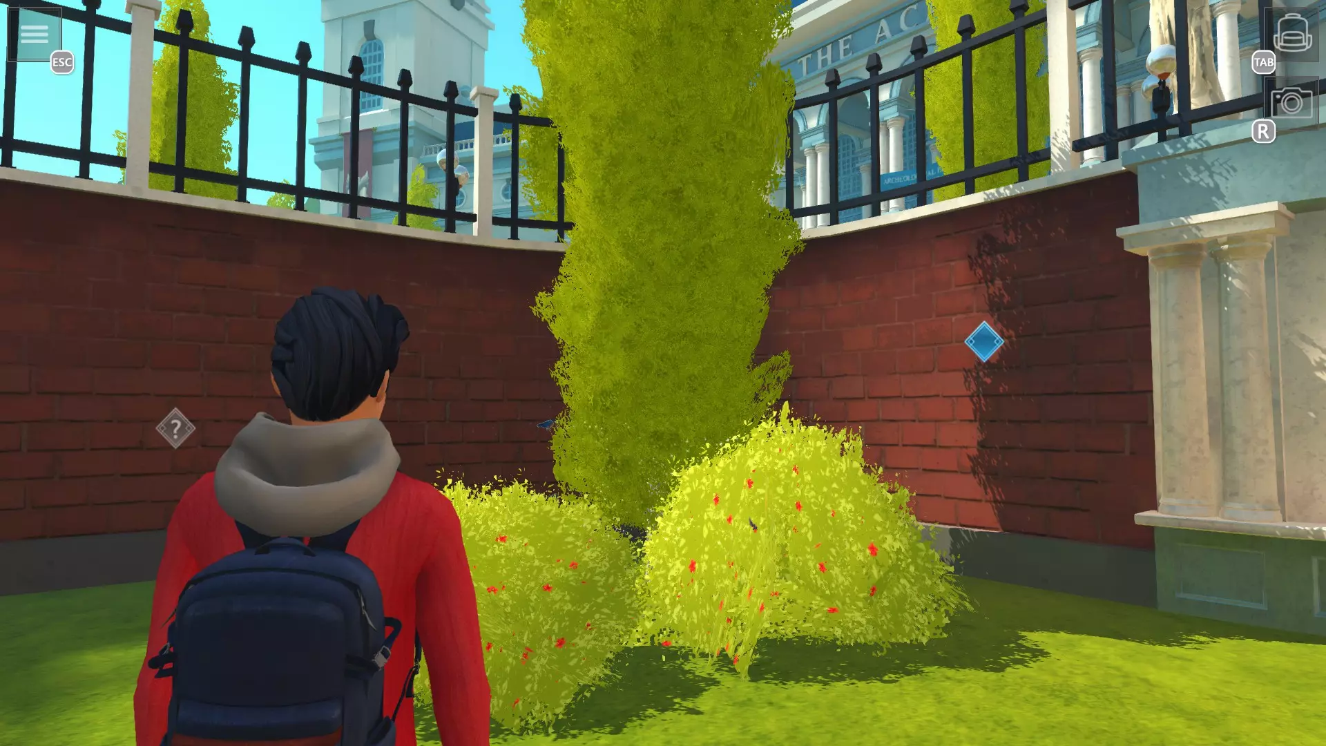 蝴蝶研究员 拍摄所有蝴蝶的照片 提示:拍摄过的蝴蝶闪光会消失 学院前方 1.右侧雕像长椅旁边