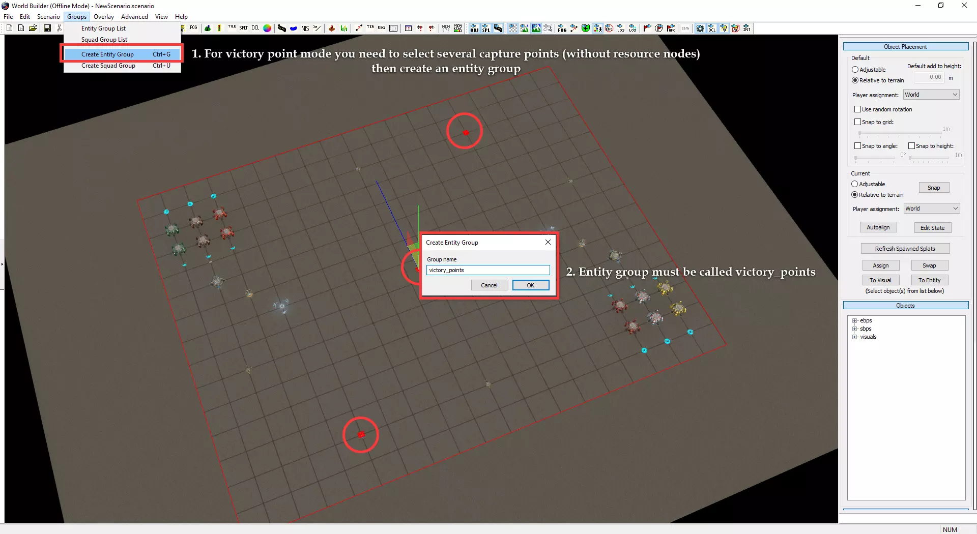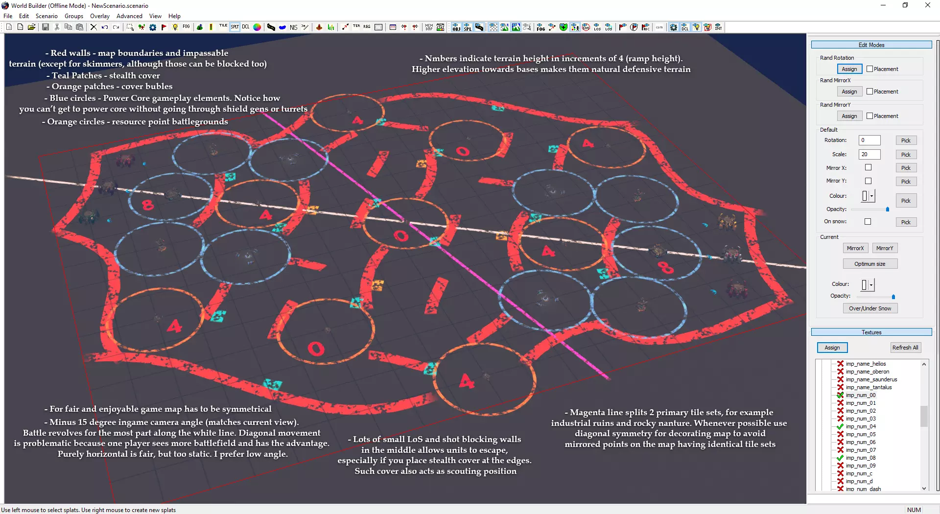 关卡设计 从技术角度而言,这一步骤本应在放置基本游戏玩法对象之后、进行任何细节处理工作之前完成,但我决定先讲解世界编辑器的基本工具如何运作,并展示使用这些工具能够实现的效果。 关卡设计是制作一张优质地图中最为重要的环节。我并非游戏玩法设计师,因此不得不通过反复试验来学习所有相关知识。无论你的地图多么精美,若它给某一方玩家带来不公平的优势且缺乏平衡性,那么游玩这张地图的人都不会获得良好的体验。同样需要注意的是,细节处理工作会耗费大量时间。跳过关卡设计步骤可能会导致大量此类工作白费。请尽可能花时间让你的地图布局达到平衡且经过深思熟虑。