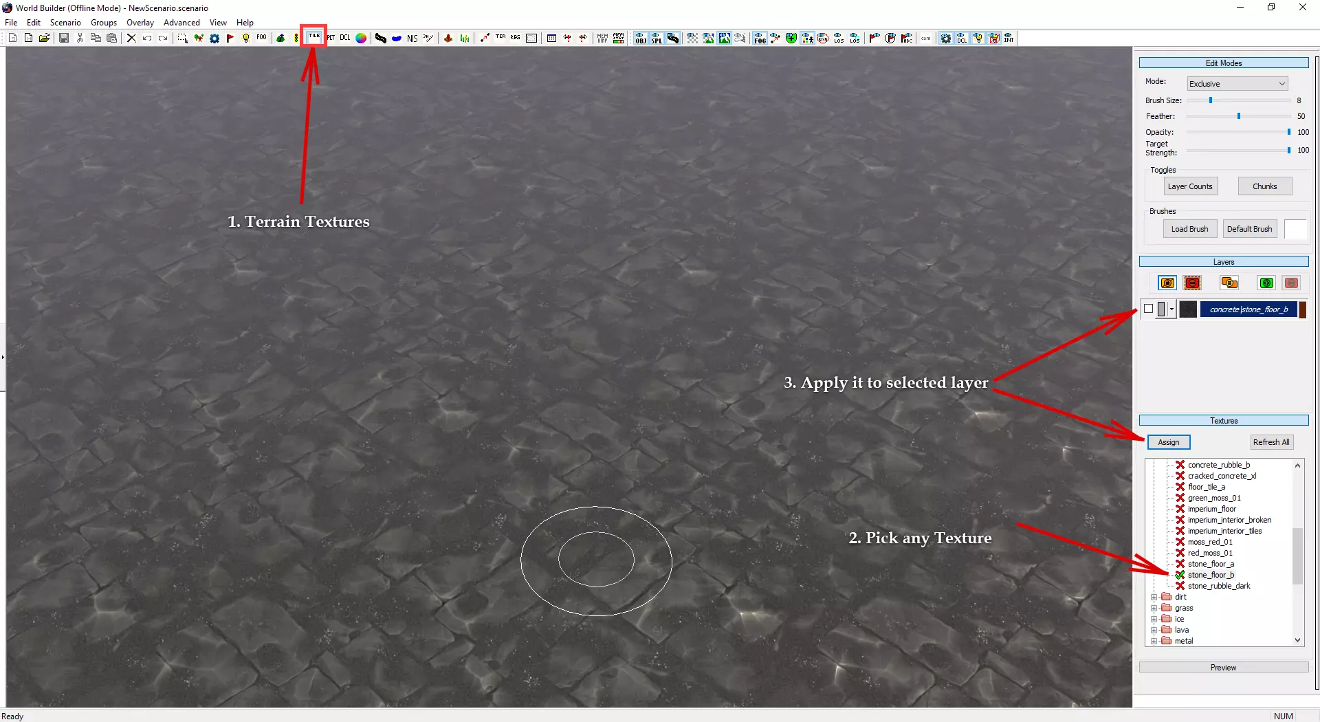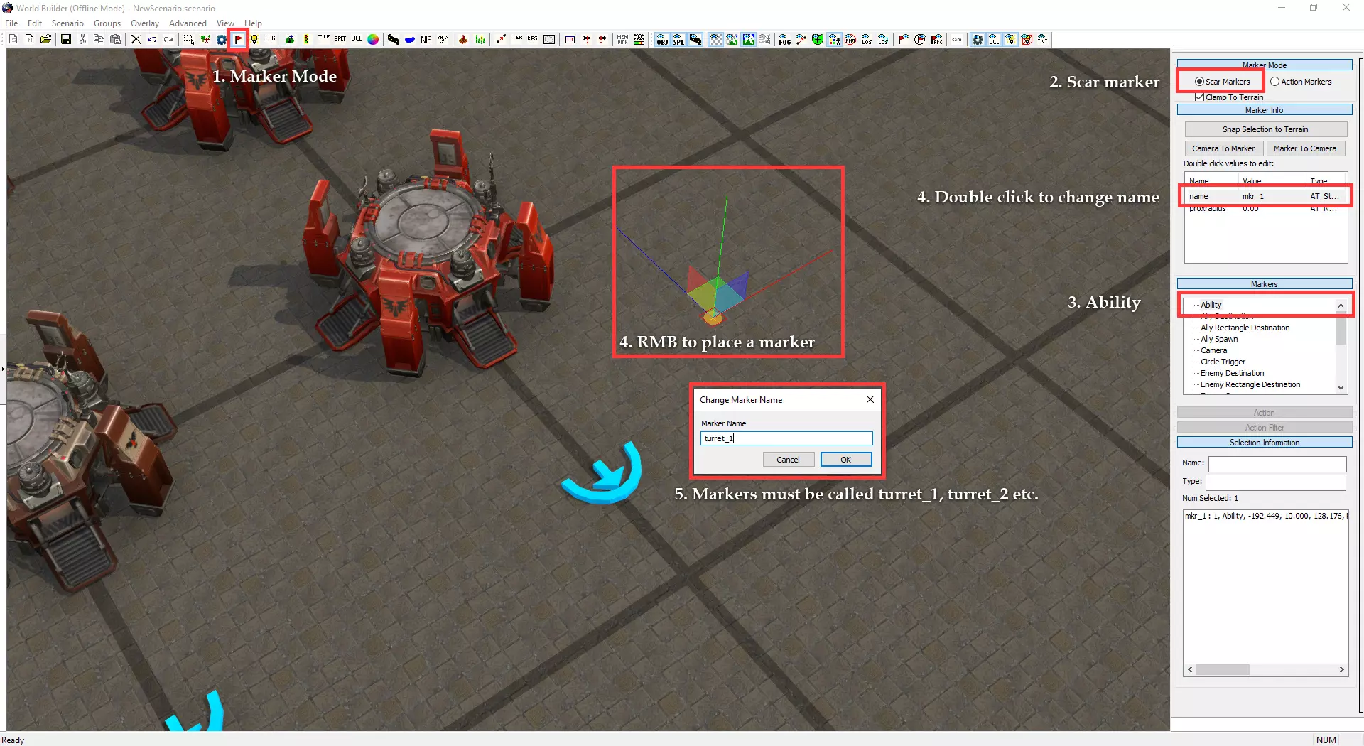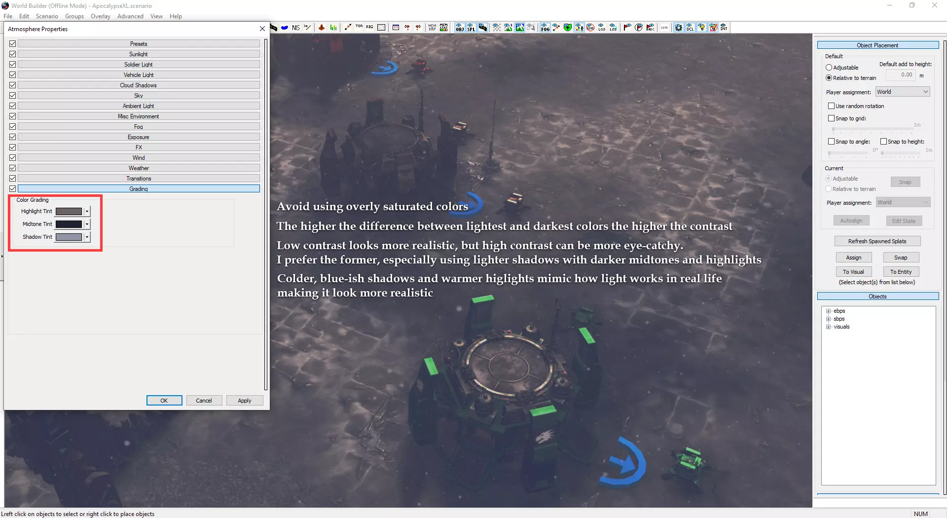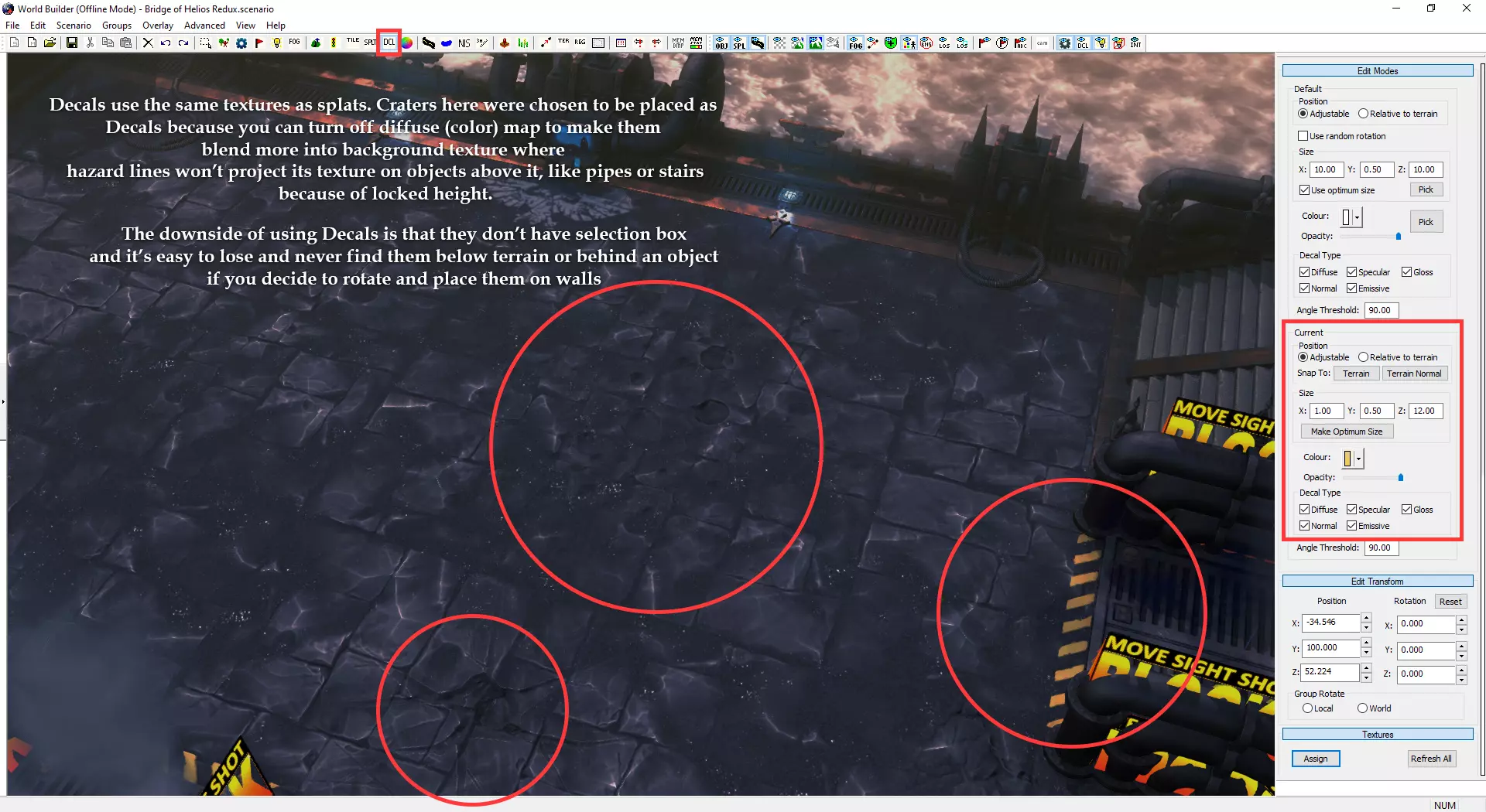 自定义小地图与加载界面 制作自定义小地图需使用Photoshop或其他可处理.tga文件的图像编辑器。 打开位于Documents/My Games/Dawn of War III/modssource/scenarios/路径下的[你的地图名称]_mm_generated文件 圈选出不可通行地形,新建图层并用一种颜色填充选区。用另一种颜色填充背景。 可使用颜色及内发光/外发光等图层样式效果,以匹配Relic的小地图风格。 编辑alpha通道以制作自定义边框。 将文件另存为.tga格式,命名为“[去掉括号的你的地图名称]_mm_handmade”。 制作自定义加载界面需在世界编辑器中为你的地图截取截图。从最佳角度展示地图。保存为多个.TGA文件需根据游戏模式使用以下名称: 核心模式:【你的地图名称(不含括号)】_loading_background_powercore 和 【你的地图名称(不含括号)】_unloading_background_powercore 胜利点模式:【你的地图名称(不含括号)】_loading_background 和 【你的地图名称(不含括号)】_unloading_background 歼灭模式:【你的地图名称(不含括号)】_loading_background_annihilation 和 【你的地图名称(不含括号)】_unloading_background_annihilation 带炮塔的歼灭模式:【你的地图名称(不含括号)】_loading_background_annihilation_with_turrets 和 【你的地图名称(不含括号)】_unloading_background_annihilation_with_turrets 相机设置