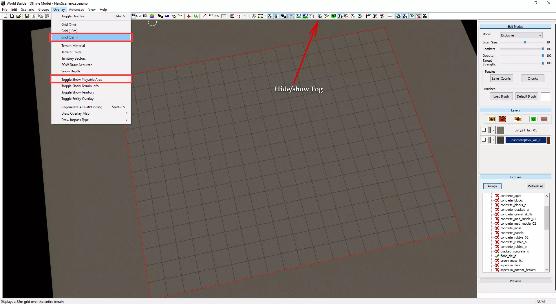 若要关闭领地或网格显示,请前往【覆盖层】>【切换覆盖层】,或按下Ctrl + F5。