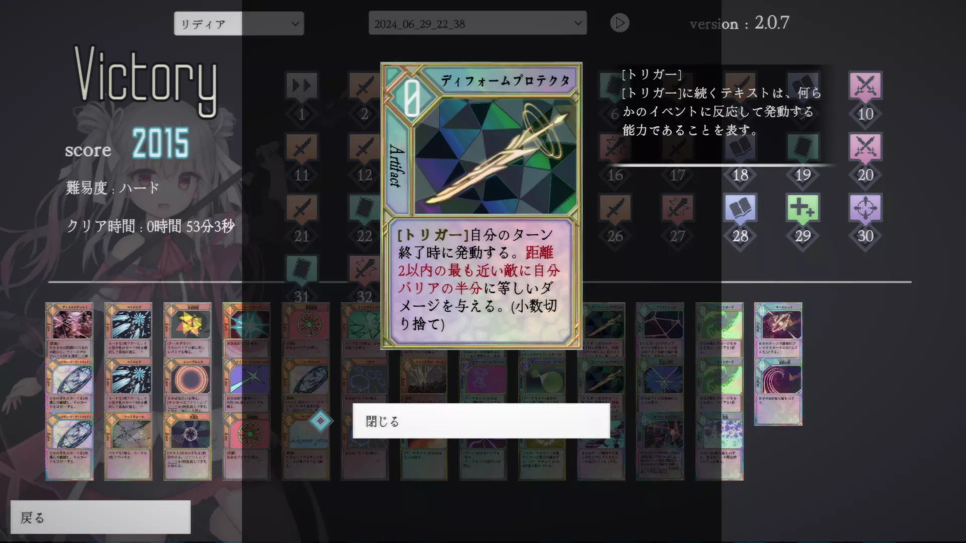 《地城遗物》莉迪雅 变形护卫核心卡组 1.卡组概念 以构筑护盾、维持生存的同时,通过【变形护卫】和【聚合螺栓】削减对手生命值为核心思路。 2.优点 ・由于能大量生成护盾,几乎可以无伤击败敌人。 ・能够隔绝受到伤害时可能触发的异常状态。 ・核心组件仅为维持护盾的卡牌和利用护盾进行攻击的卡牌,卡组自由度较高。 3.缺点 ・初期阶段较为艰难。根据抽卡情况,可能会被精英怪物压制。1. 如果在10层没有获得【变形保护器(ディフォームプロテクタ)】或【聚合螺栓(コンバージェント・ボルト)】的话会很困难 2. 卡组构筑 2.1 必备组件 ○以下两者之一 ・变形保护器(ディフォームプロテクタ) ・聚合螺栓(コンバージェント・ボルト) ○以下两者之一 ・星界护盾(アストラルシールド) ・不朽之物(イモータルオブジェクト) 2.2 有了更好的组件 ○生成屏障的卡牌 ○能赋予坚韧的卡牌 ○能赋予加护的卡牌
