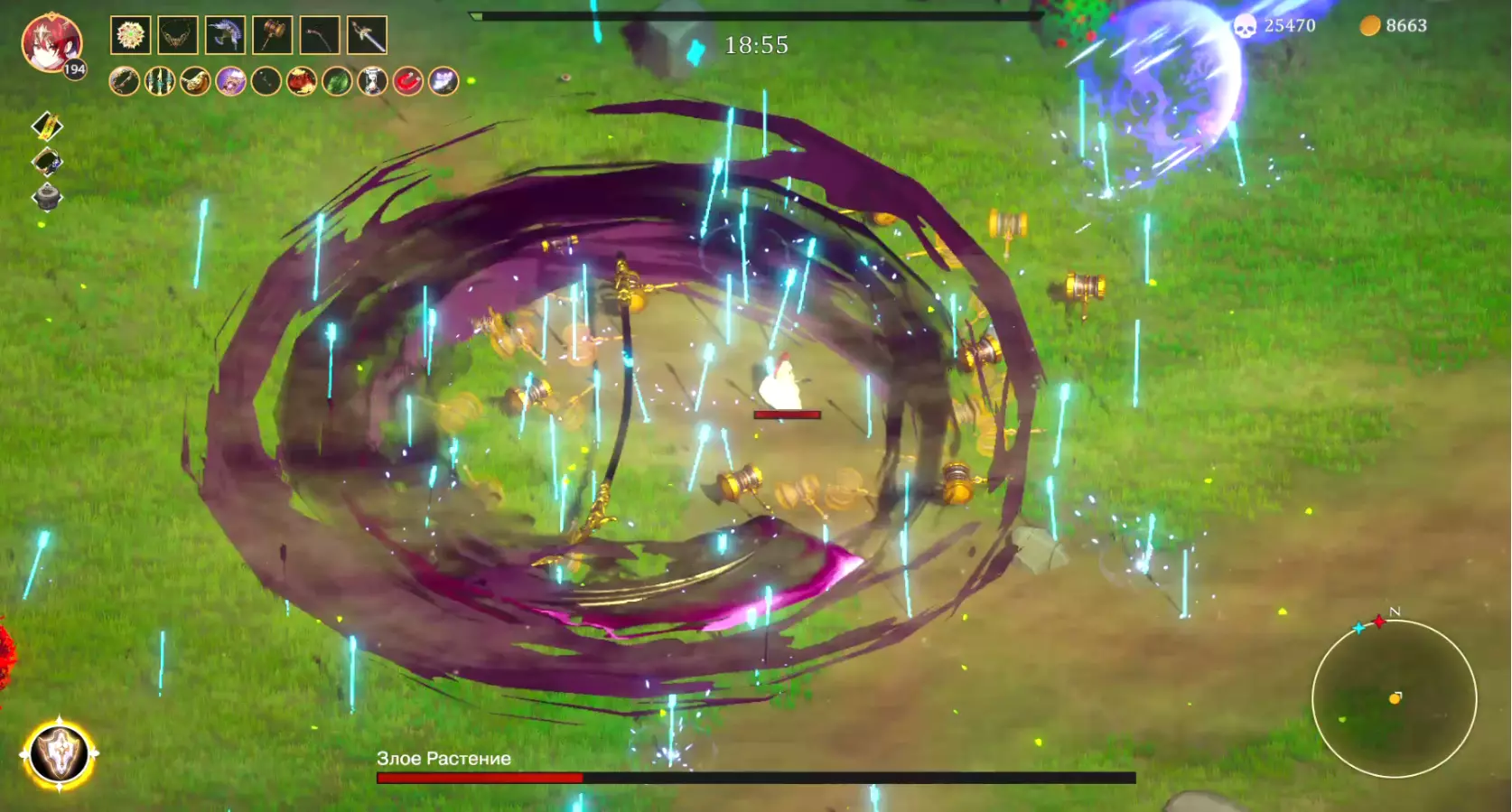 那么,我们首先需要【雷霆护符】(必备)。然后当我们遇到关卡的第一个 Boss 时:需要靠近它,并在【雷霆护符】的攻击动画期间按下暂停键(esc)。必须是第一道闪电击中 Boss,而不是反弹伤害。此时在暂停期间,Boss 的生命值条会持续减少。只需等待生命值耗尽后再取消暂停即可。这对最终BOSS有效,对普通的小BOSS和怪物也有效(只是在这种情况下没有生命值指示条,很难判断是否把握好了时机)。如果没能抓住时机,只需按暂停键直到成功为止。