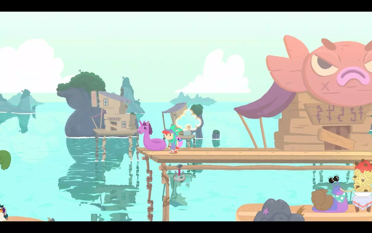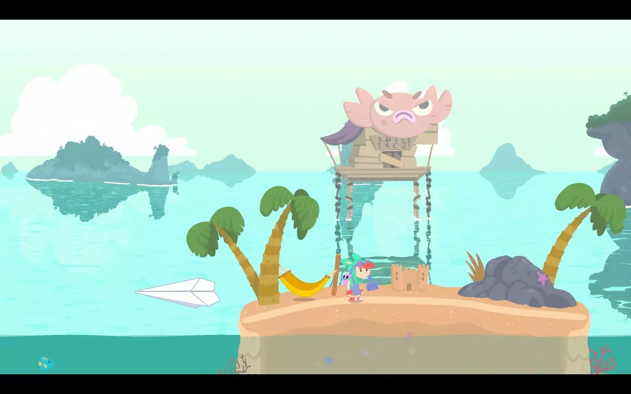 奇怪的讯息找到遥远岛屿的秘密。 在沙地淌沙区域的最左侧一个紫马游泳圈处使用纸飞机。 起点: