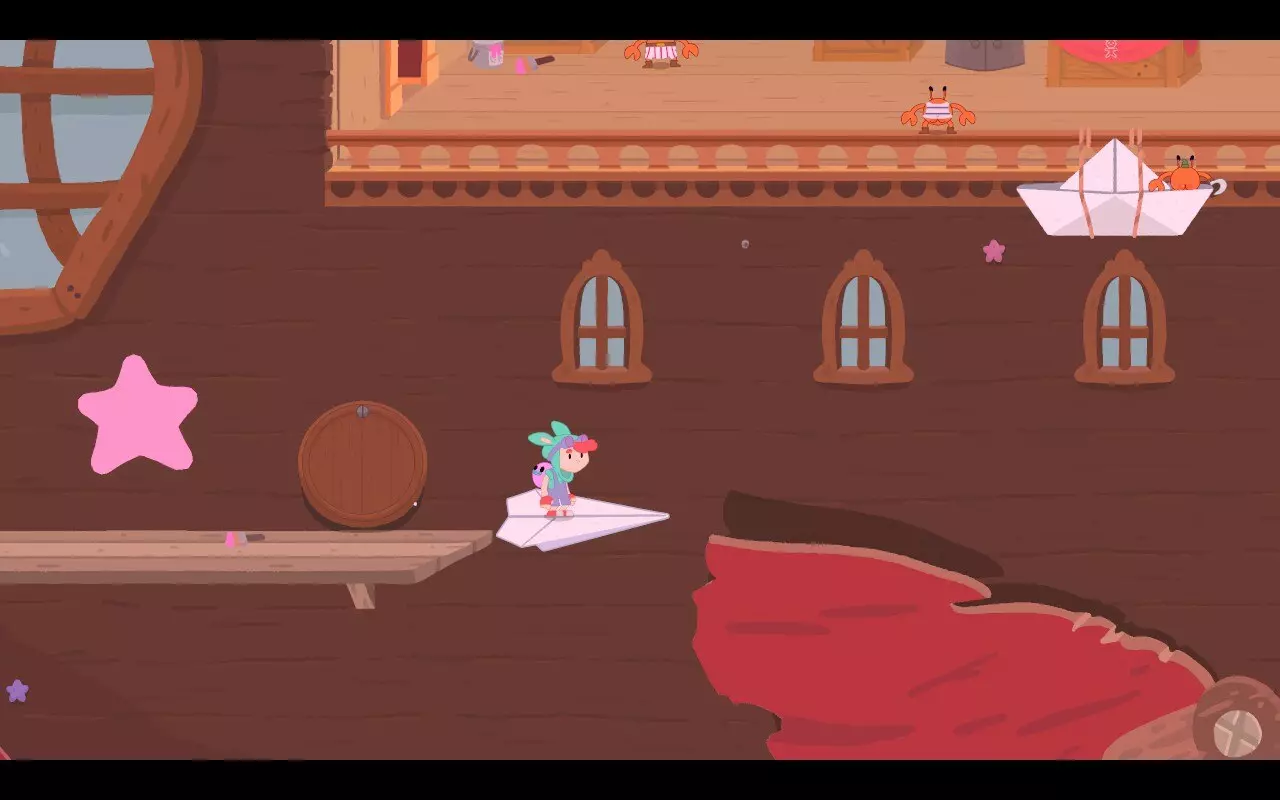 奇特的名单找到船体隐藏的秘密。 在空艇升空区域,岩石蟹挑战入口处向右使用纸飞机: