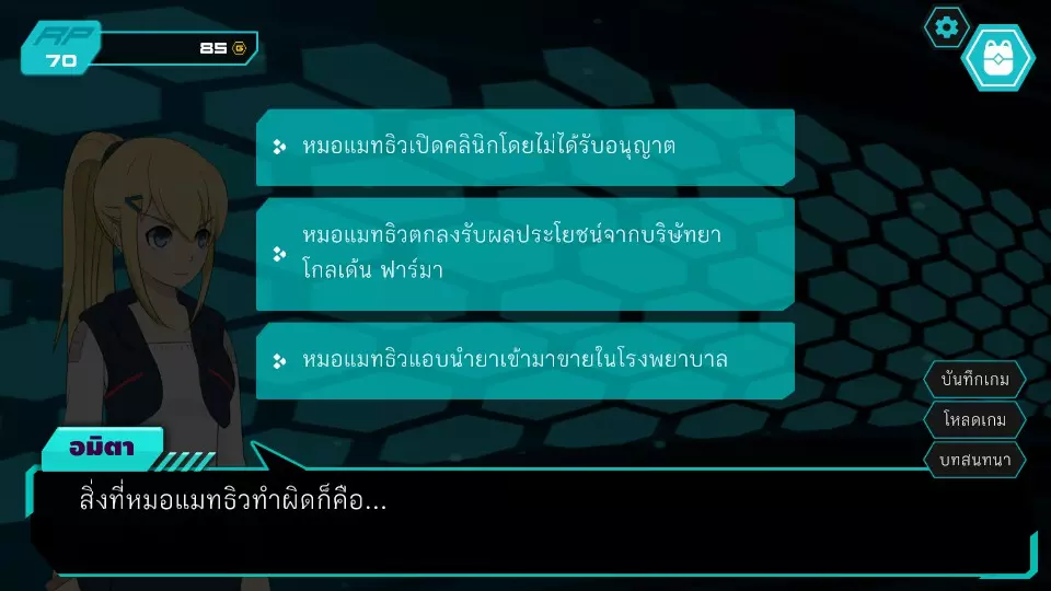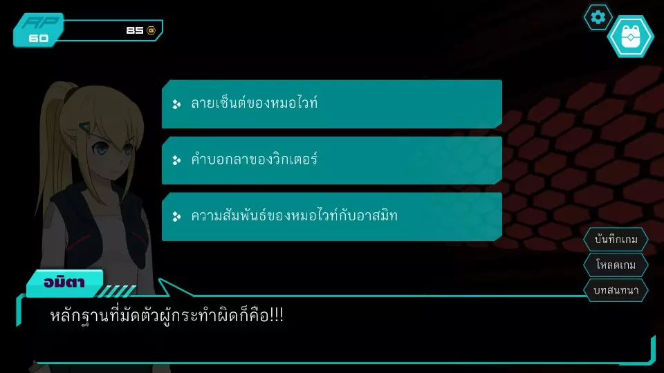声望暴涨!!声望值+10 获得成就“A Mysterous Medicine” 第二章(阿斯米特案件) 此后,剧情将通过与医院院长的对话展开。阿斯米特的死亡成为新案件,小游戏将引导玩家询问怀特医生和马修医生,直至阿米塔召唤调查之神。 正义对决4:阿米塔 vs 马修医生