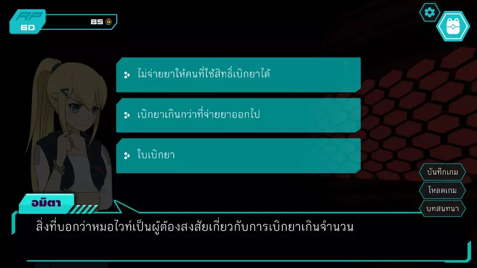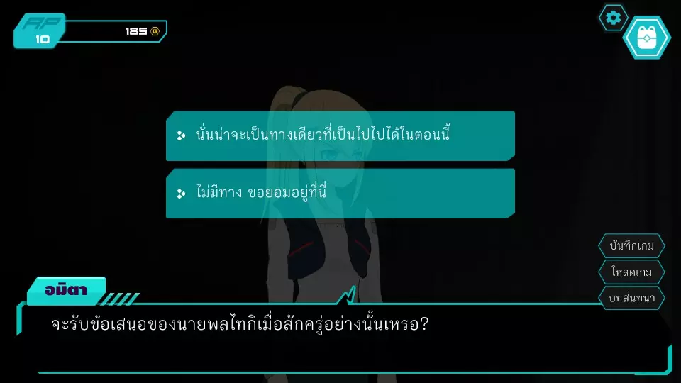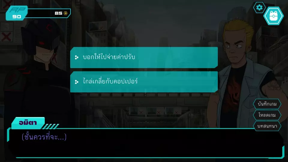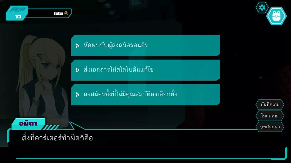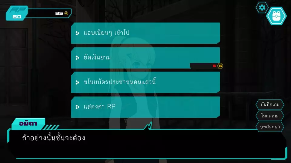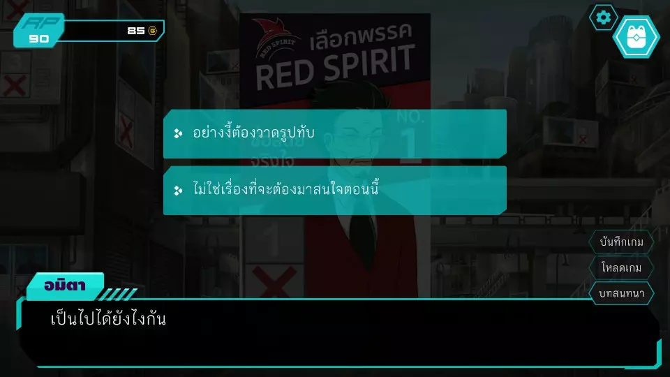第6个决定:先改变任务好吗?角色点数:0-10 金币:0-185 博江不同意,但阿米塔决心要去,让博江在这里等着然后自己进去。博江于是偷偷分开去听对话,而阿米塔则会被科珀抓住,罪名是闯入餐厅查看闭路电视。博扬对新的红灵党代表感到震惊。之后,剧情发展到阿米塔被带到旅馆的部分,跳过调查结束后的内容(正义突破第6章)。两人前往市中心广场,发现了许多线索,让人觉得卡特先生就是莱亚,接着进入第7.1个抉择。
