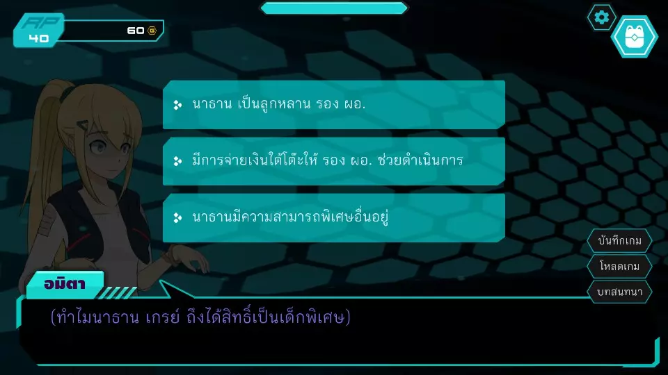 第九个决定3:帮助塞恩进入存放试卷的房间 RP:35-45 金币:30-80 塞恩会在阿米塔离开期间偷偷前往,亚姆会用钥匙换取金钱 -20 金币 RP -5 塞恩向阿米塔讲述关于卡琳老师的事,阿米塔前去寻找并找到了卡琳老师。卡琳老师询问阿米塔的身份,如果有临时证件,卡琳老师会怀疑阿米塔是谁,阿米塔会谎称自己是证件检查人员,如果有特殊卡片。卡琳老师并不在意,无论有什么通行证都没关系。卡琳老师会带阿米塔去试卷库,阿米塔就能获得关于招生过程中存在偏袒的线索,于是决定去和阿尔法学院的校长谈谈这件事。但到了之后,却看到了副校长的异常行为,并和副校长谈论了这件事。取代副校长的拒绝和漠视,使得米塔决定召唤调查之神介入,故事将走向正义突破。第一章(学生案件)
